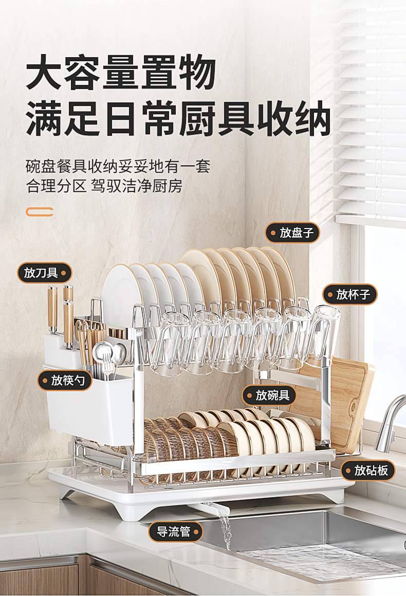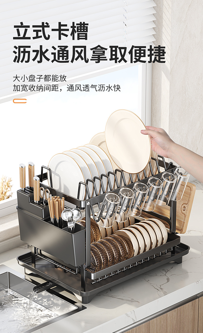 주방 수납 선반, 접시 수납 선반, 다기능 칼 홀더, 접이식 그릇 선반, 가정용 찬장, 싱크대 배수구