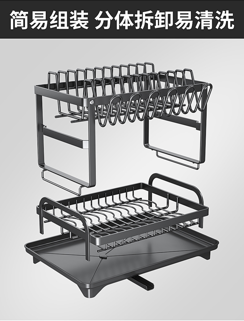 • HD1 단층 워터 가이드 그릇 및 접시 랙(블랙)