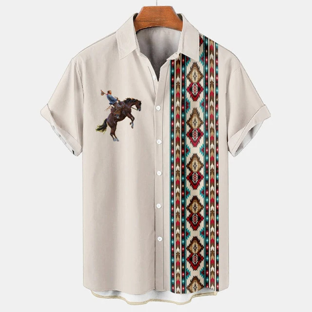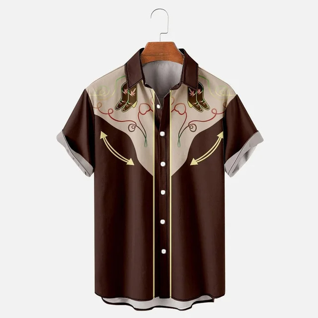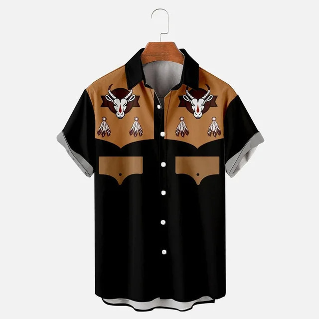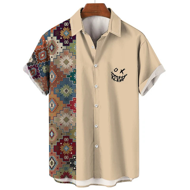 2024 여름 복고풍 셔츠 남자 크로스 보더 크리 에이 티브 새로운 데님 3D 인쇄 남자 패션 캐주얼 루즈 셔츠