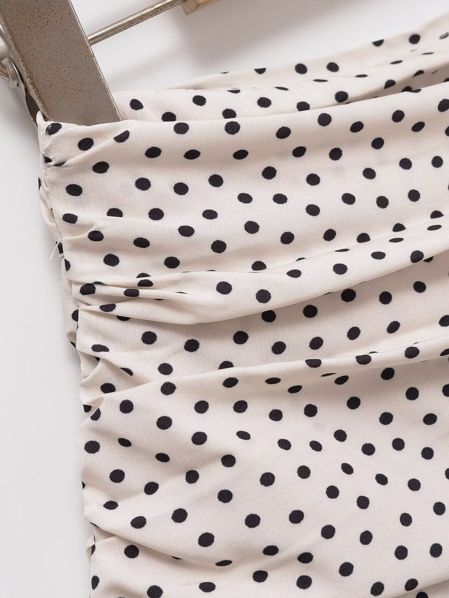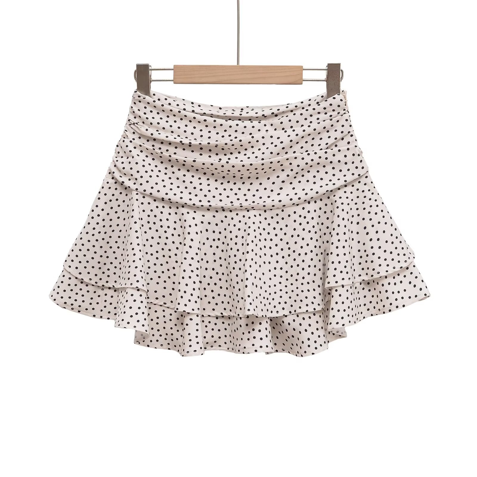 여성 도매 유럽과 미국 스타일 2025 여름 새로운 스타일 하이 웨이스트 슬리밍 폴카 도트 프린트 플리츠 레이어드 미니 스커트