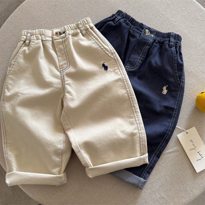 아동용 바지 2025 가을 신작 남성 및 여성 의류 Woven 다용도 자수 캐주얼 바지 베이비 루즈 스트레이트 바지