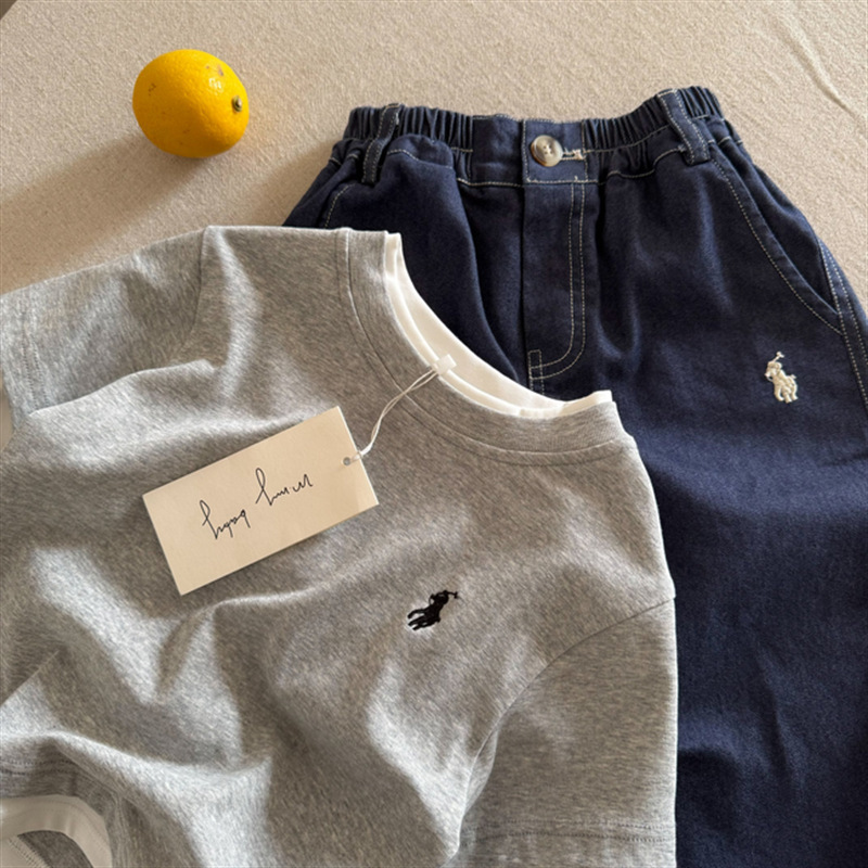 아동용 바지 2025 가을 신작 남성 및 여성 의류 Woven 다용도 자수 캐주얼 바지 베이비 루즈 스트레이트 바지스토어 가기