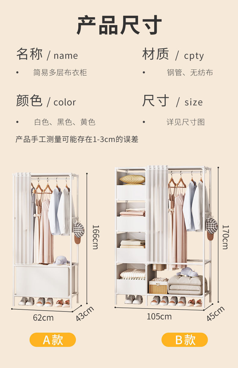 침실 머리맡 간단한 바닥 옷장 기숙사 간단한 천 옷장 코트 랙 보관 랙스토어 가기