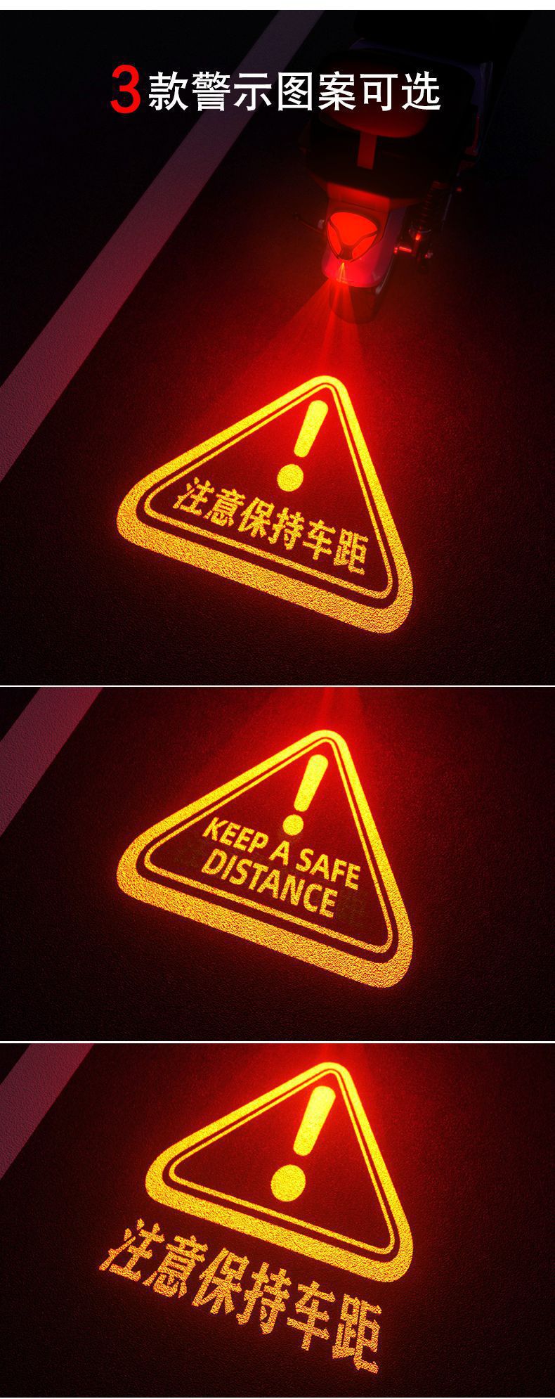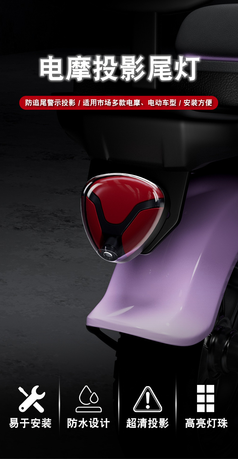 오토바이 전기 자동차 후면 테일 라이트 브레이크 경고등 로고 장식 배터리 자동차 안전 후면 충돌 방지 프로젝션 라이트