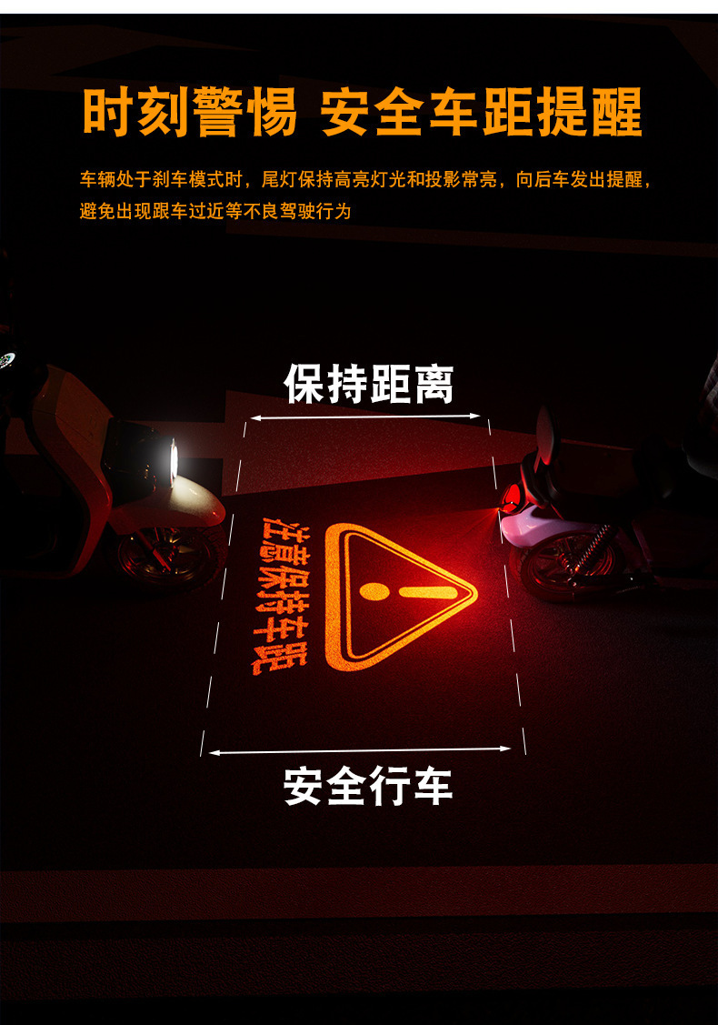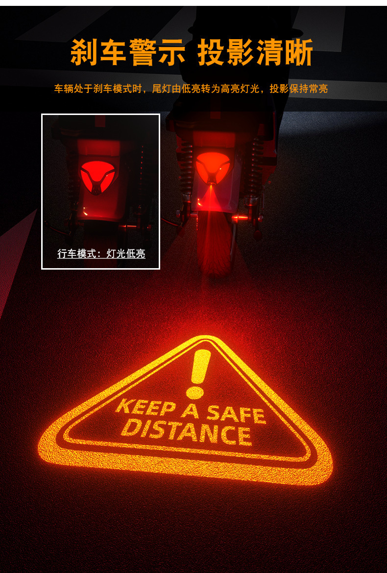 오토바이 전기 자동차 후면 테일 라이트 브레이크 경고등 로고 장식 배터리 자동차 안전 후면 충돌 방지 프로젝션 라이트스토어 가기