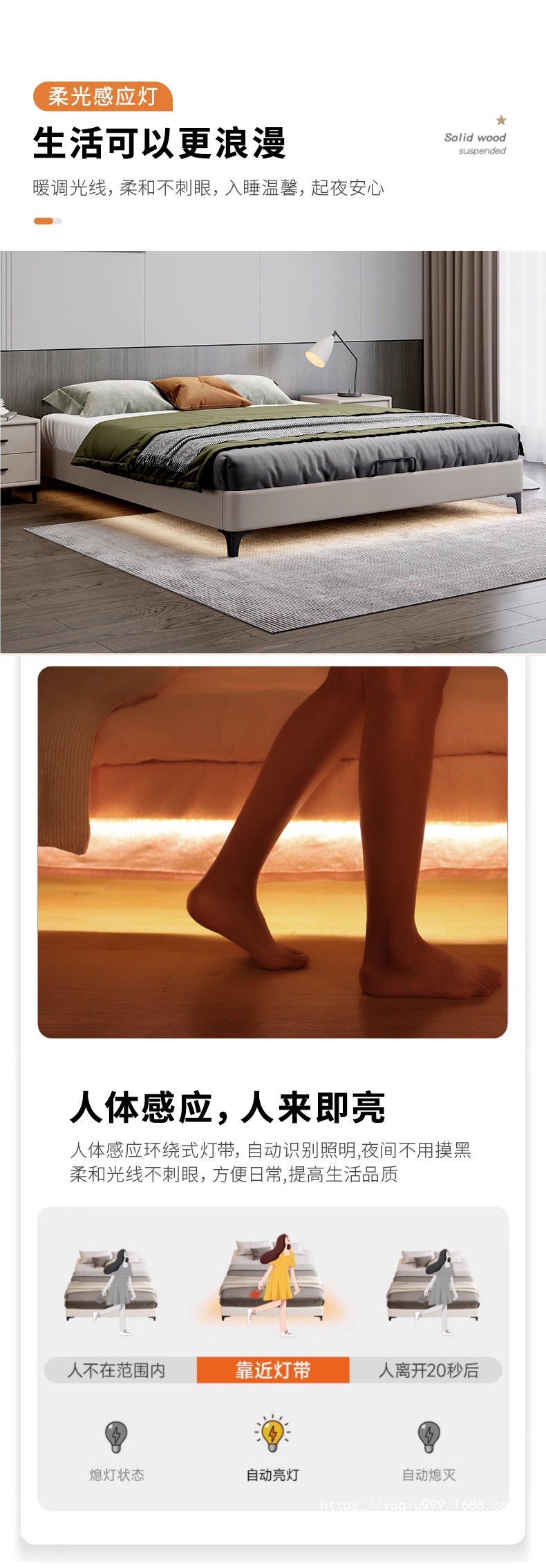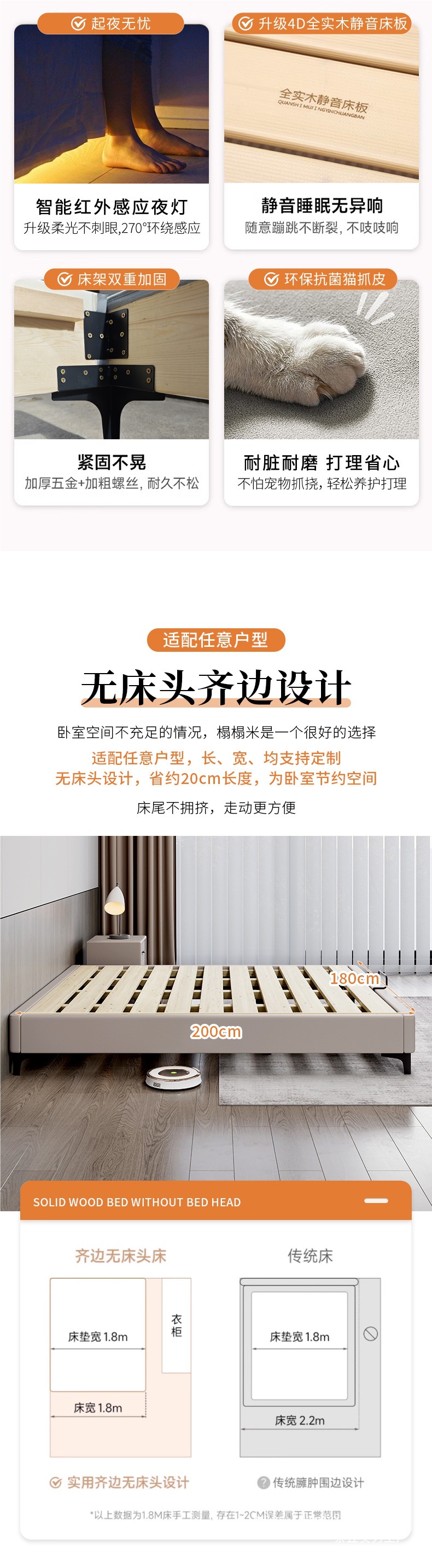 • [암호화 버전] 무소음 침대 + 20cm 라텍스 스프링 매트리스 + 침대 옆 탁자 1개