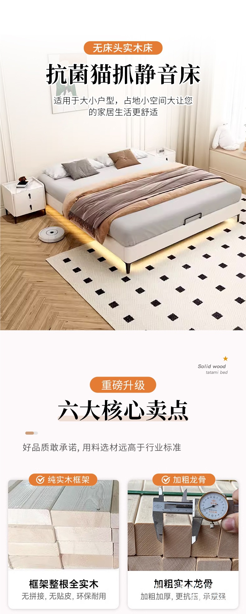 모든 원목 다다미 침대 없음 헤드보드 프레임 싱글 및 더블 낮은 침대 1.5m 침실 중소형 침대스토어 가기
