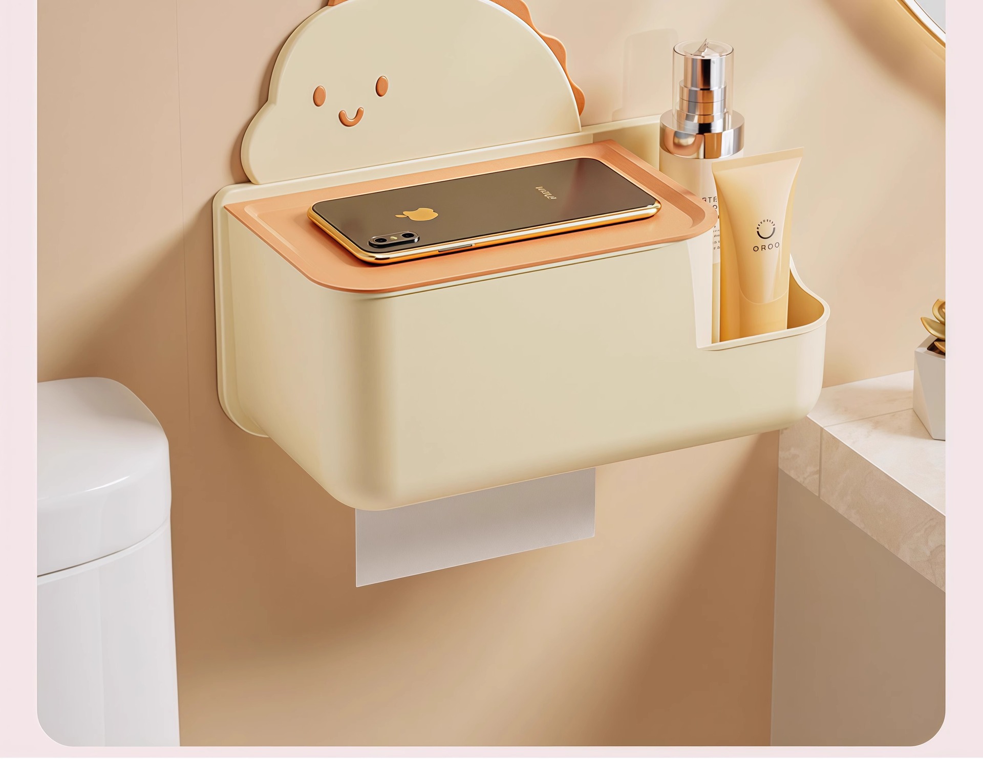 귀여운 티슈 상자 벽걸이 형 펀치없는 2025 새로운 가정용 화장지 종이 다기능 보관 상자