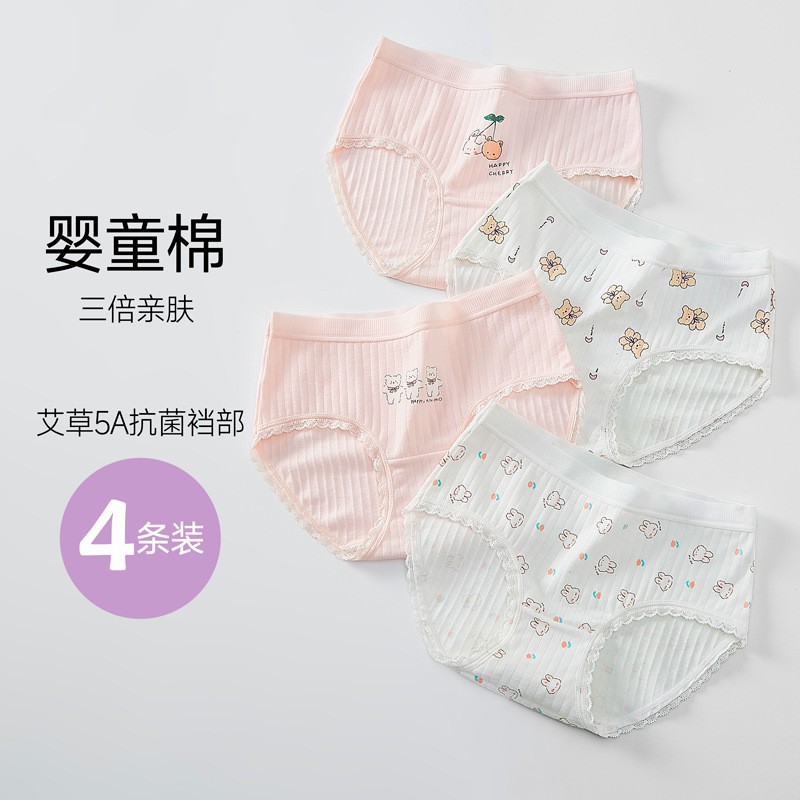 A급 여아 발달기 여아 중학생 순면 팬티 항균 통기성 클램핑없는 PP 아동 속옷스토어 가기