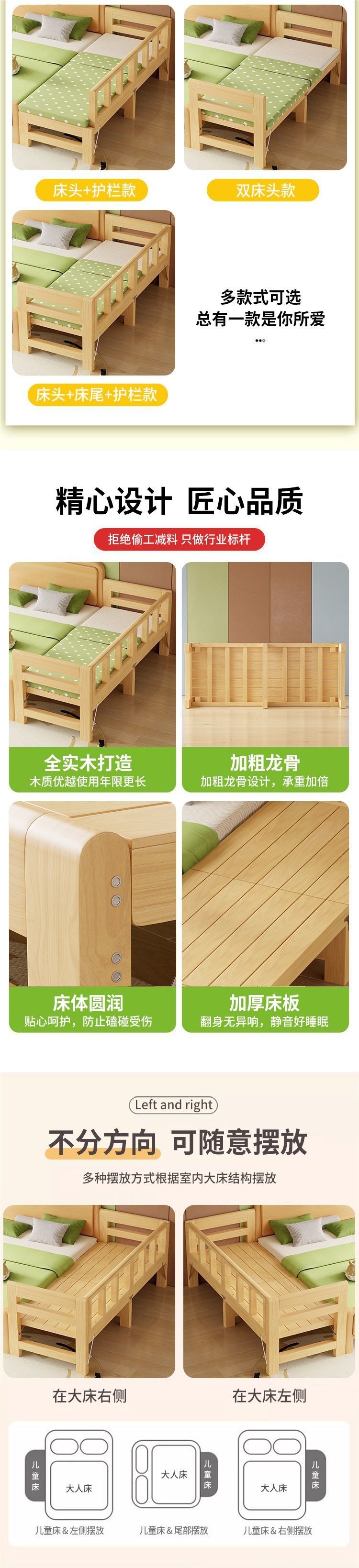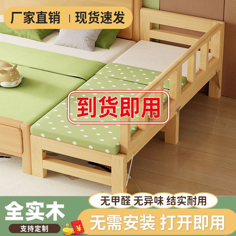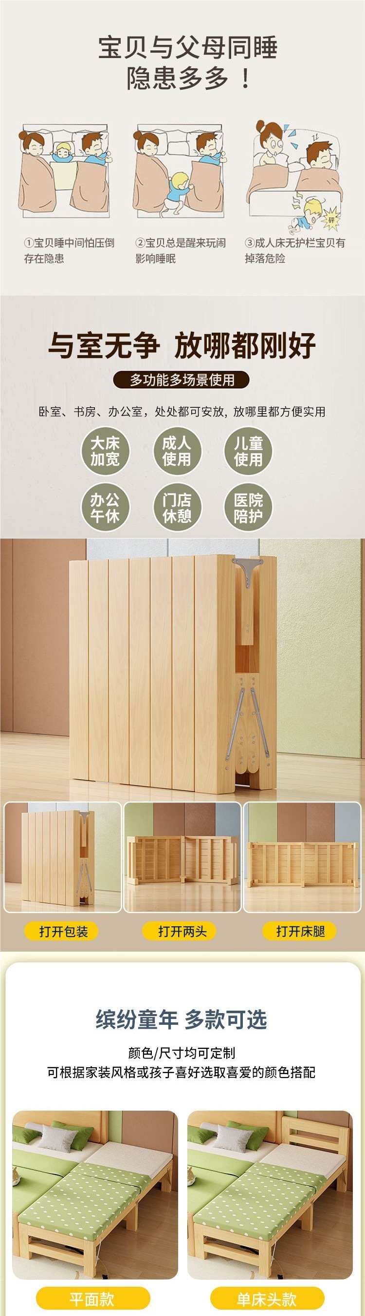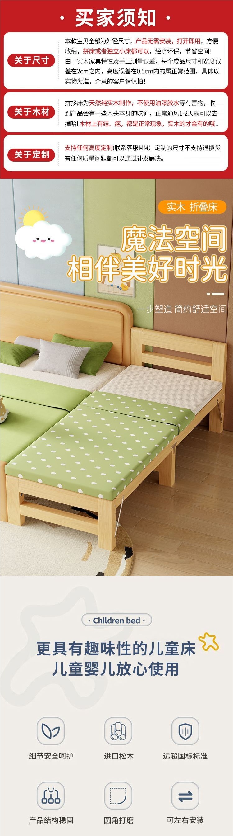 단단한 나무 아기 접합 침대 접이식 침대 설치가 필요 없으며 가드 레일이있는 어린이 침대 소년 소녀 접합 대형 침대 유아용 침대스토어 가기