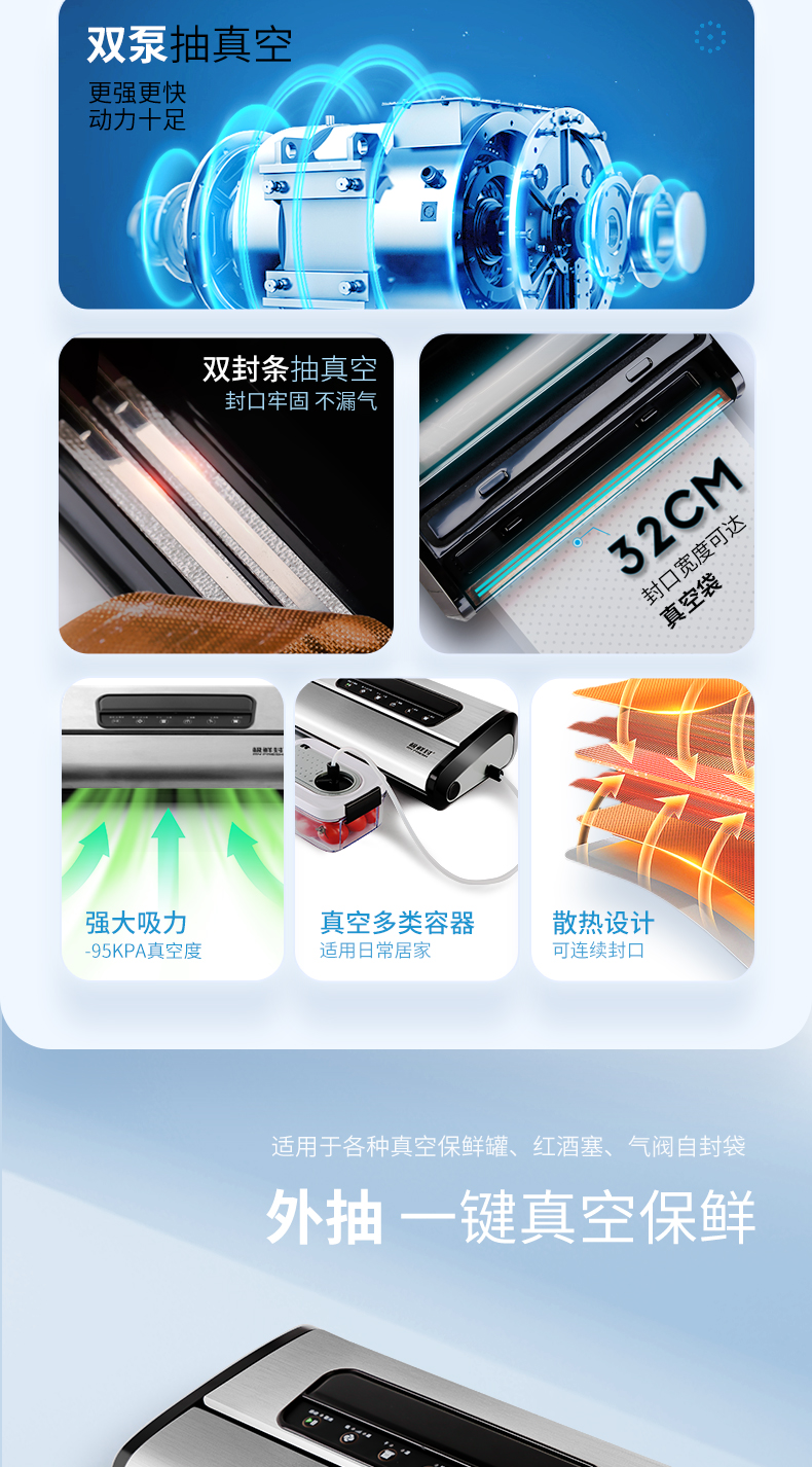 무료 배송 [더블 펌프 및 더블 씰] 초신속 대형 흡입 진공 보존 기계 연속 상업용 다기능 진정한 신선도 씰링