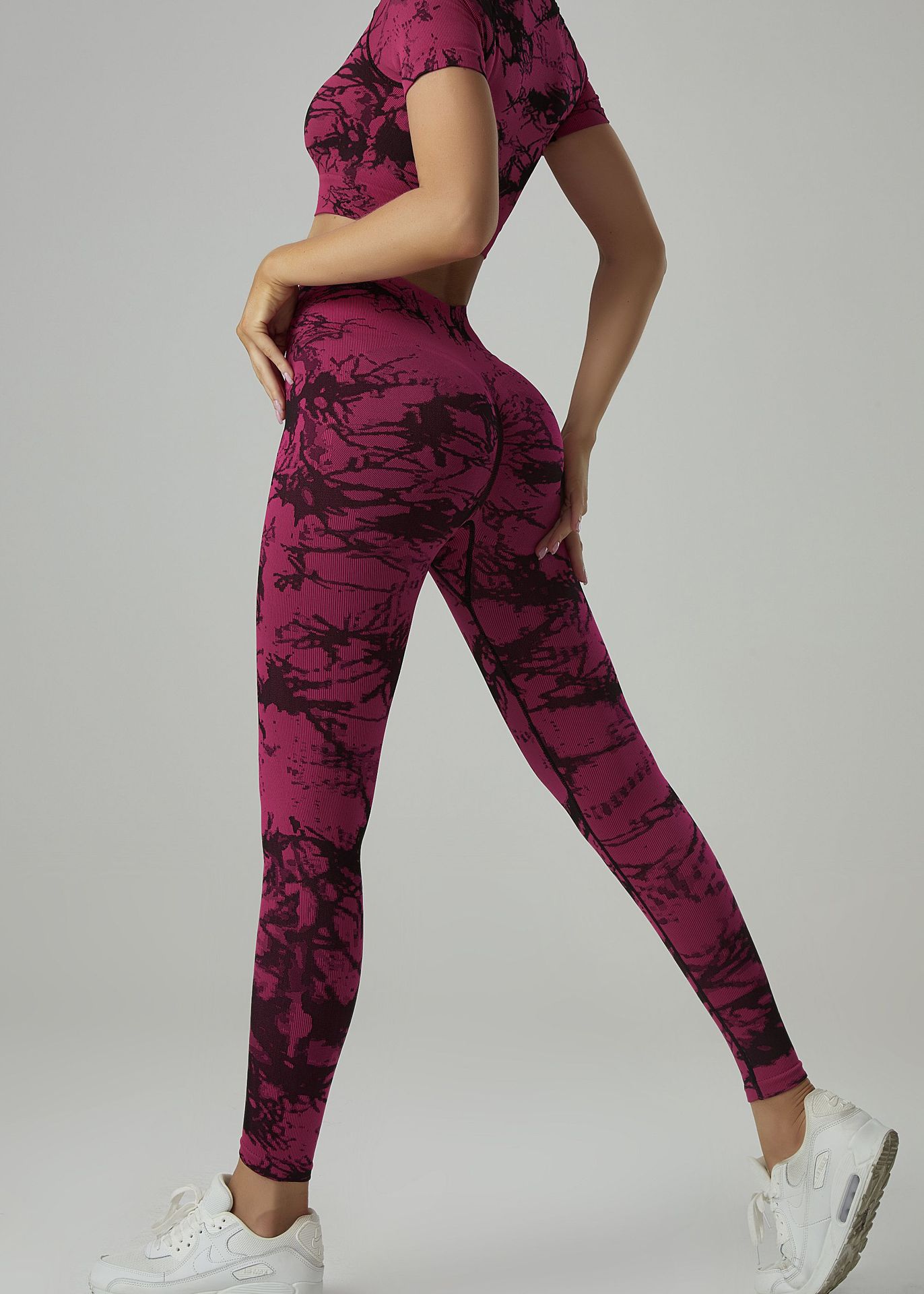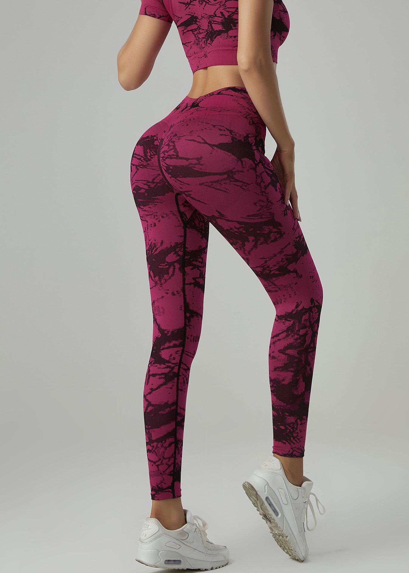 피트니스 러닝 속건성 고탄성 스포츠 반팔 + 바지용 새로운 유럽과 미국 스타일의 이음매 없는 복숭아 엉덩이 요가 바지