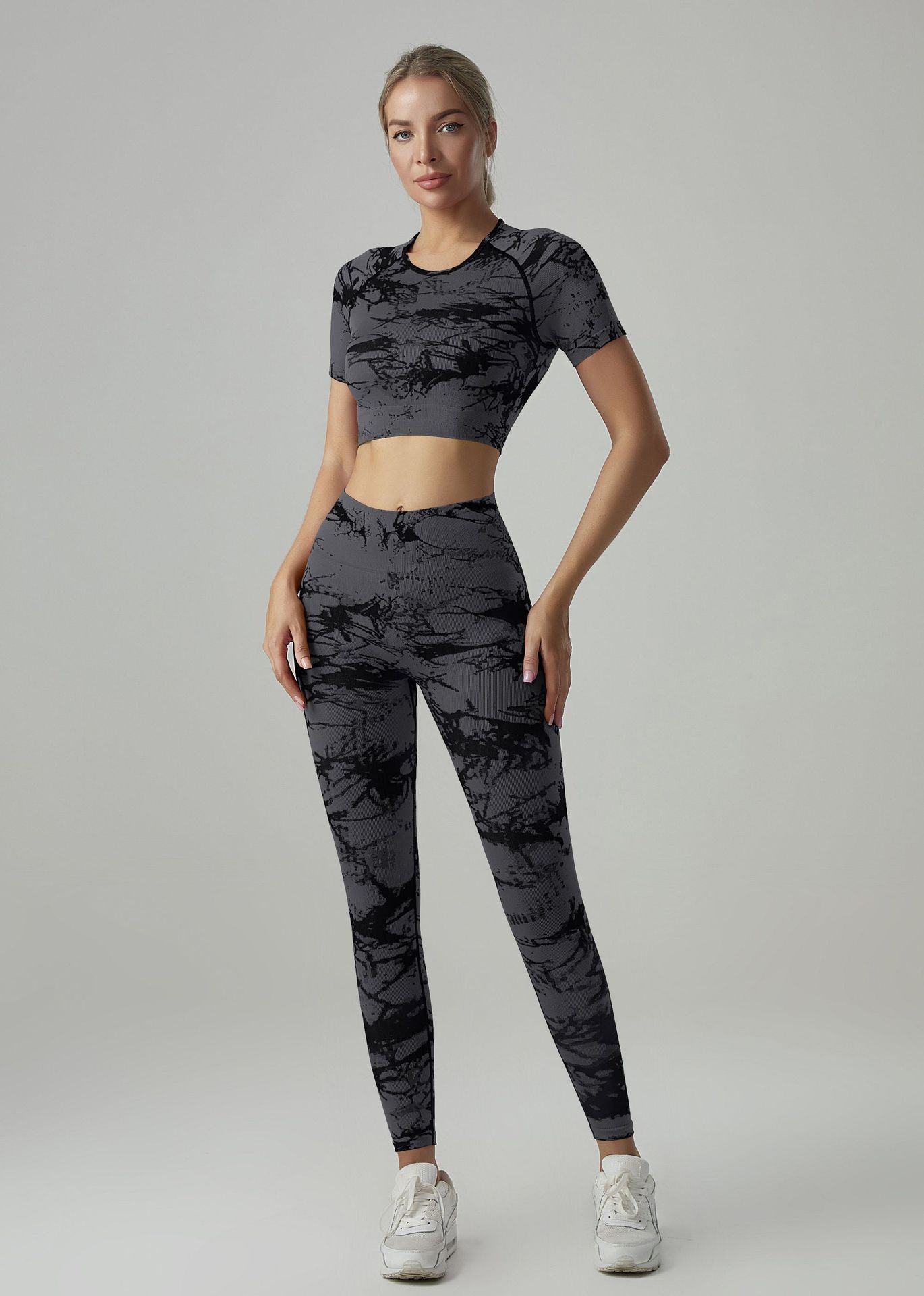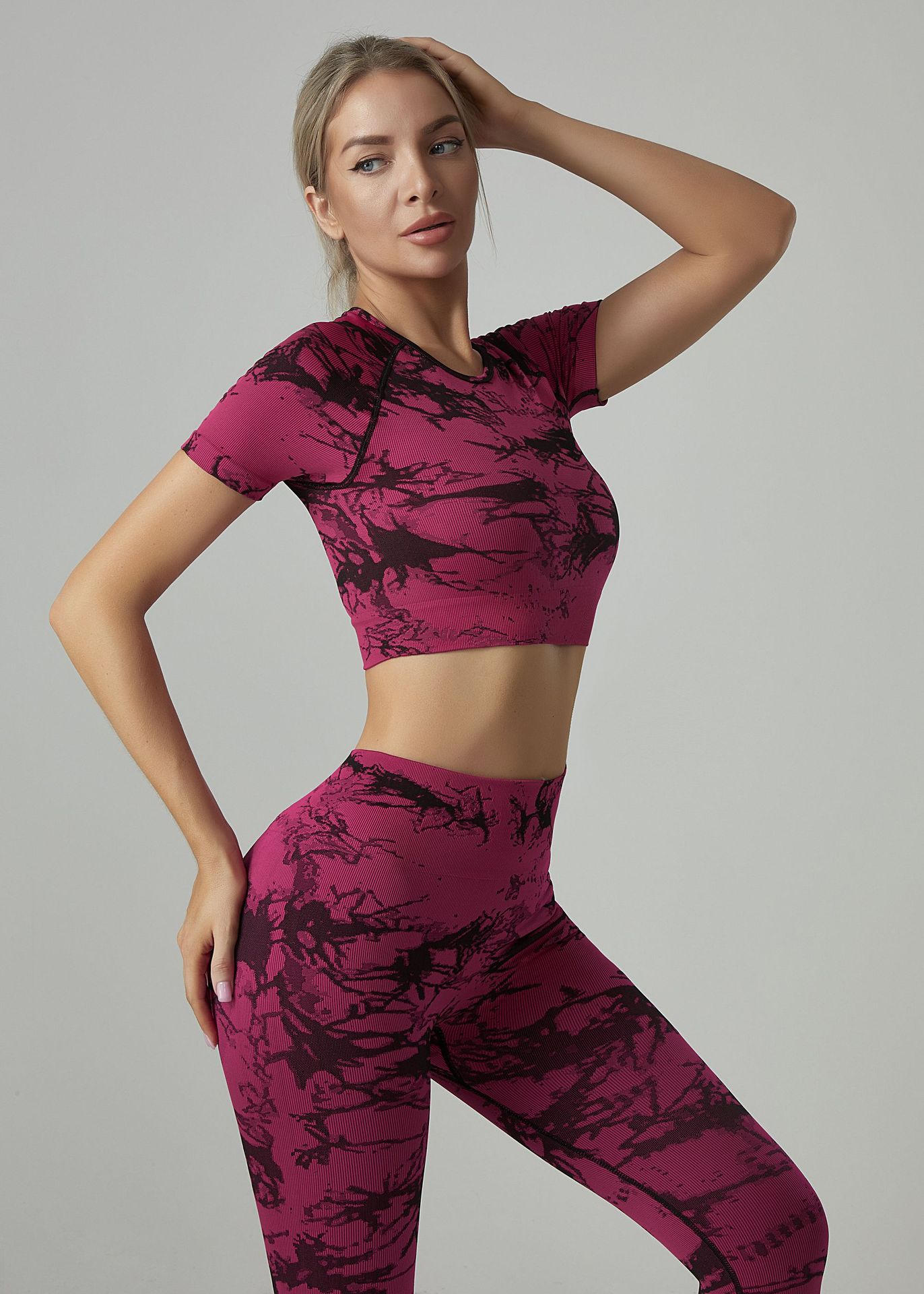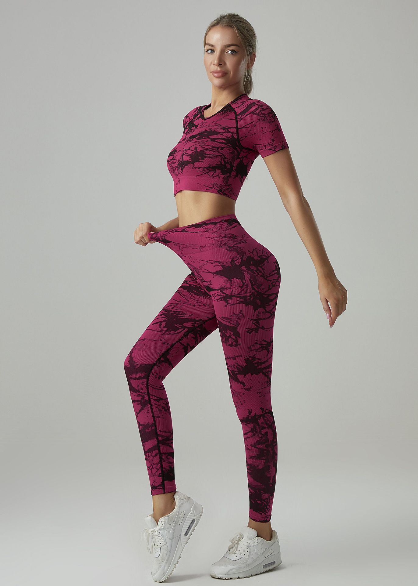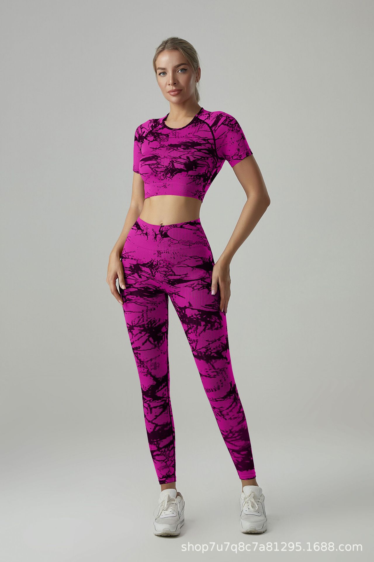 피트니스 러닝 속건성 고탄성 스포츠 반팔 + 바지용 새로운 유럽과 미국 스타일의 이음매 없는 복숭아 엉덩이 요가 바지스토어 가기