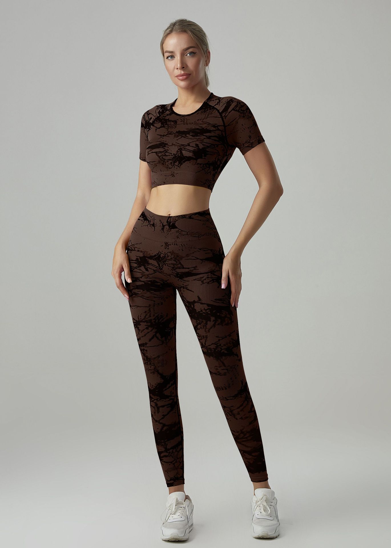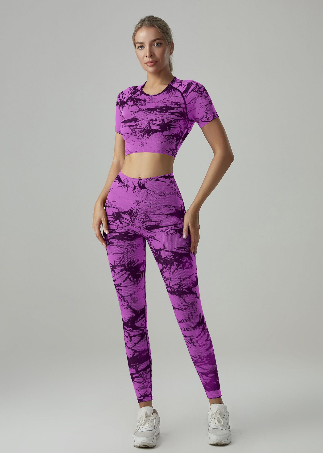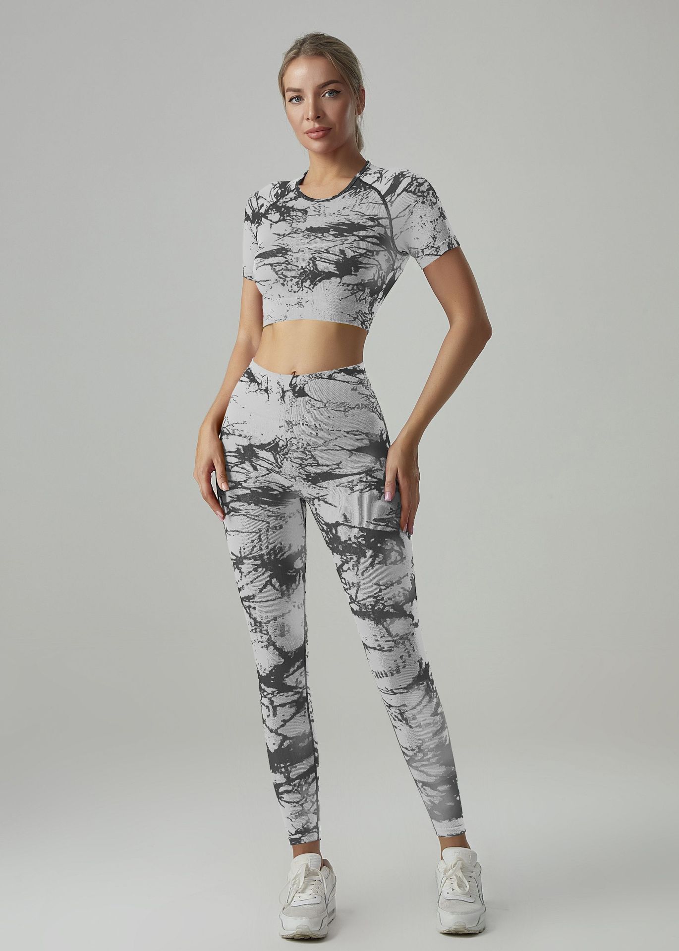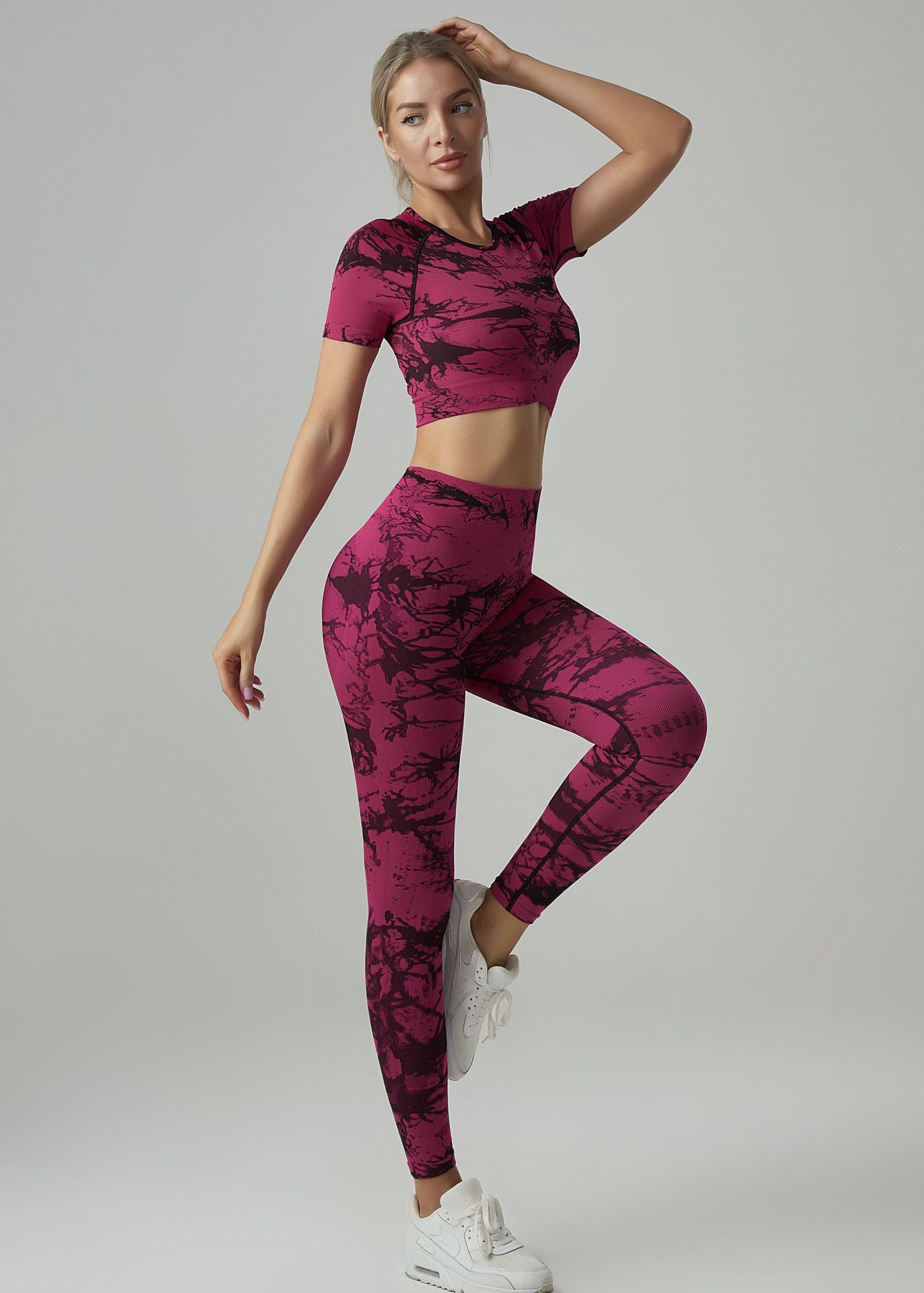 피트니스 러닝 속건성 고탄성 스포츠 반팔 + 바지용 새로운 유럽과 미국 스타일의 이음매 없는 복숭아 엉덩이 요가 바지스토어 가기