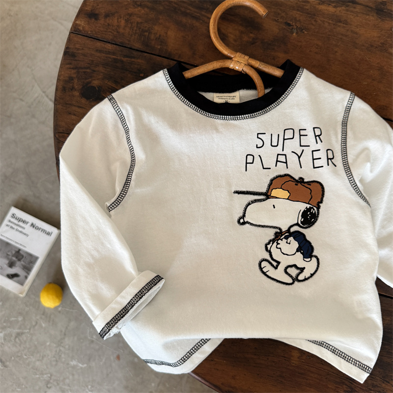 소년 긴팔 셔츠 만화 어린이 풀오버 탑 한국어 버전 1-6 세 아기 소녀 티셔츠 봄, 가을 드롭 배송스토어 가기