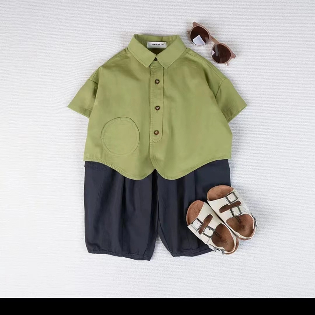소년 정장 여름 새로운 한국 스타일 아동 셔츠와 바지 얇은 아기 캐주얼하고 멋진 투피스 트렌디 세트