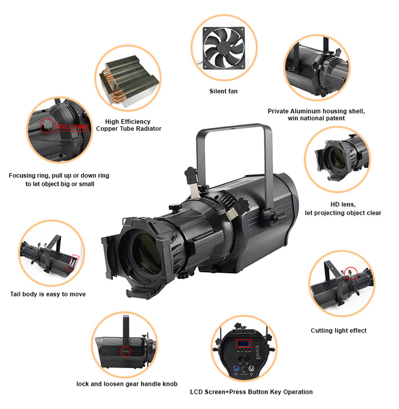 LED200W 영화 및 무대 조명 크로스보더 300W 웨딩 댄스 스튜디오 이중 색상 다채로운 컷팅 스포트라이트 이미징 라이트