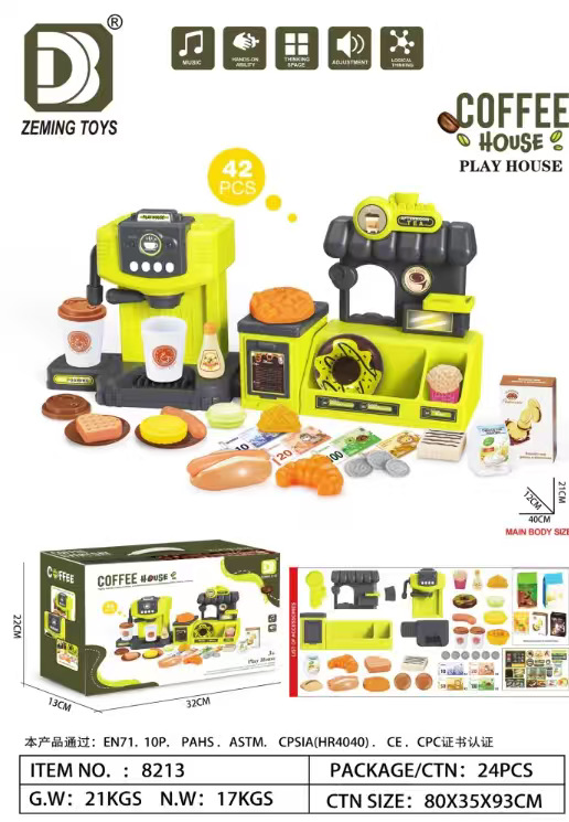 어린이 롤 플레잉 하우스 시뮬레이션 커피 머신 버거 주문 테이블 세트 장난감스토어 가기