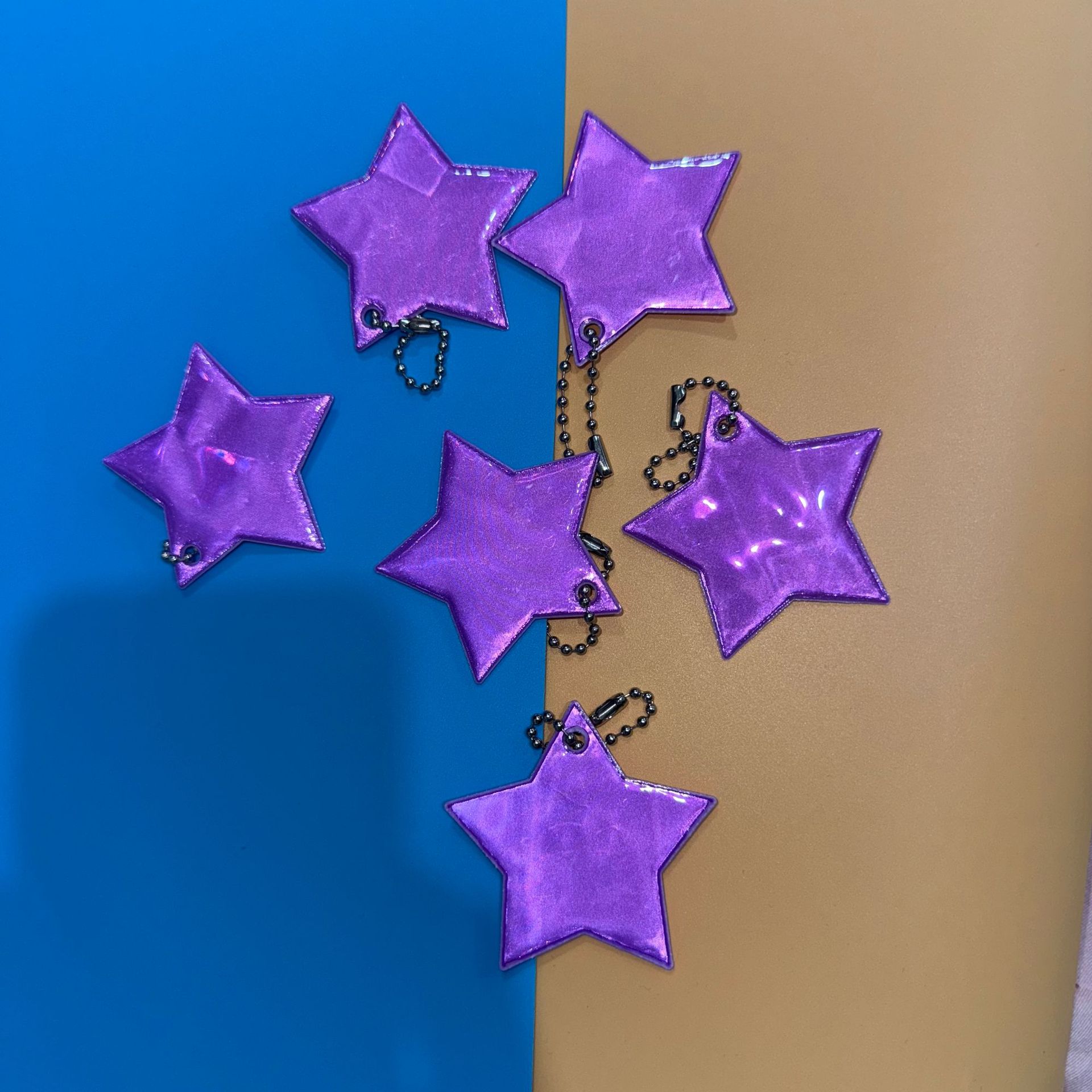 다양한 색상 옵션 새로운 Amazon PVC 반사 오각형 펜던트 만화 어린이 별 장식 키 체인