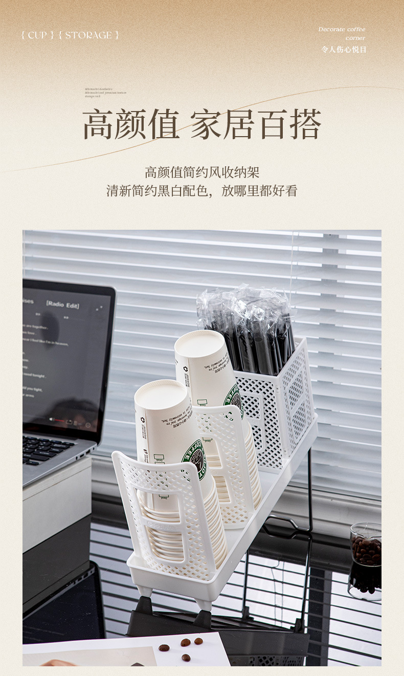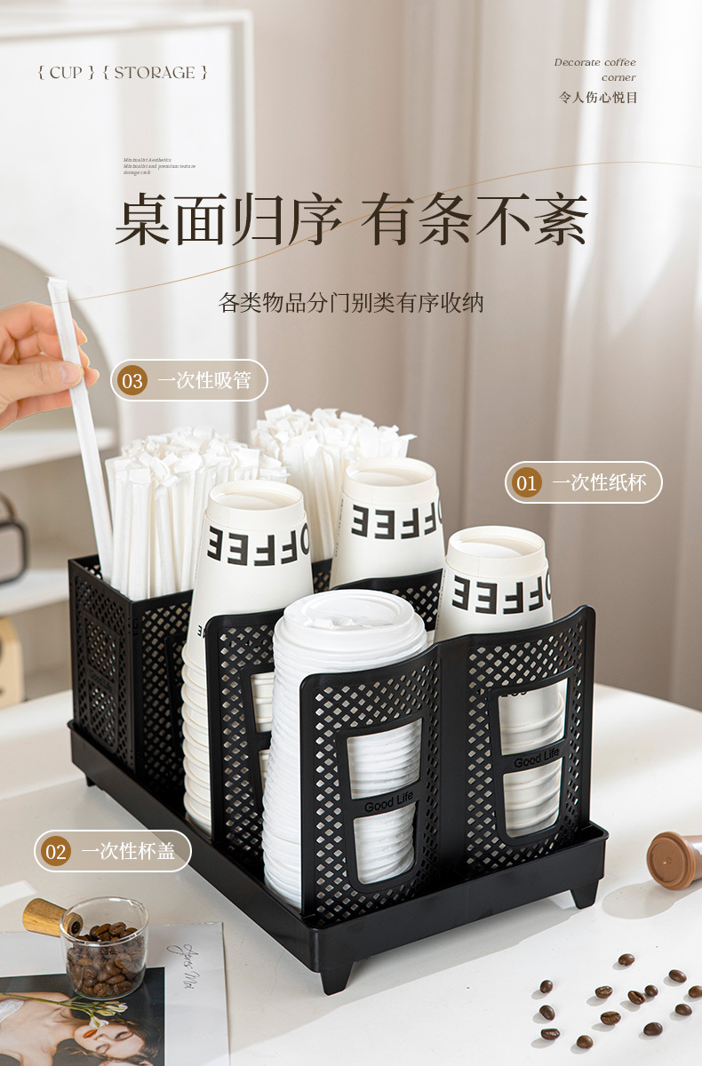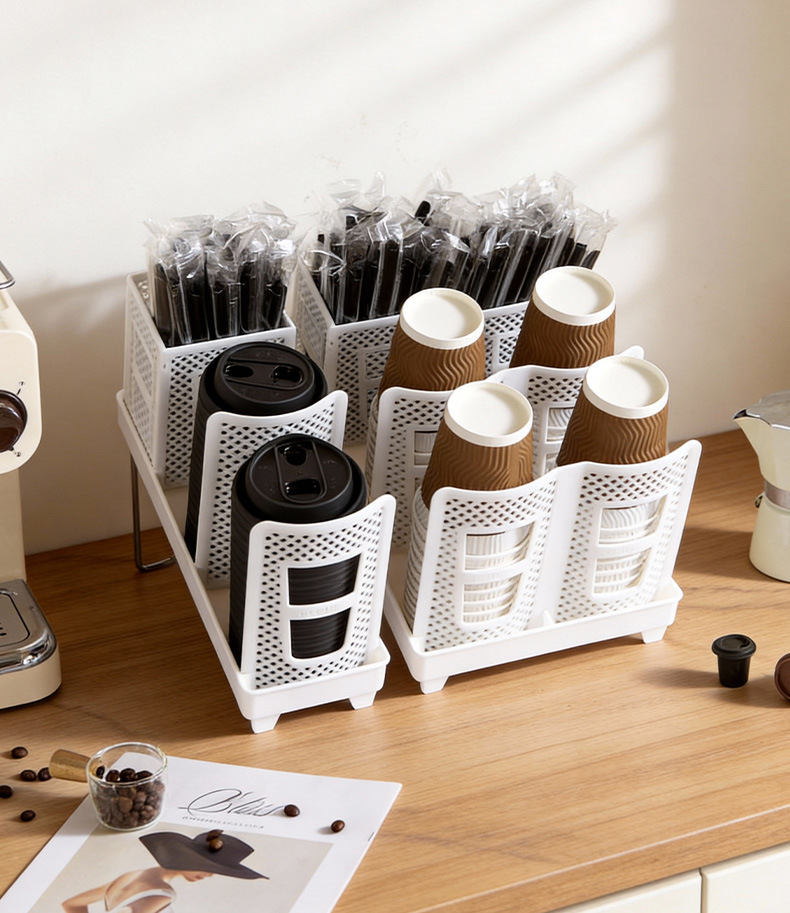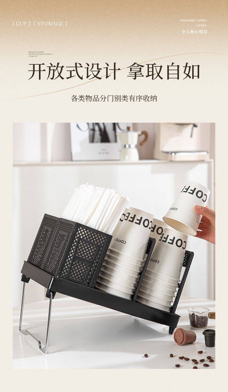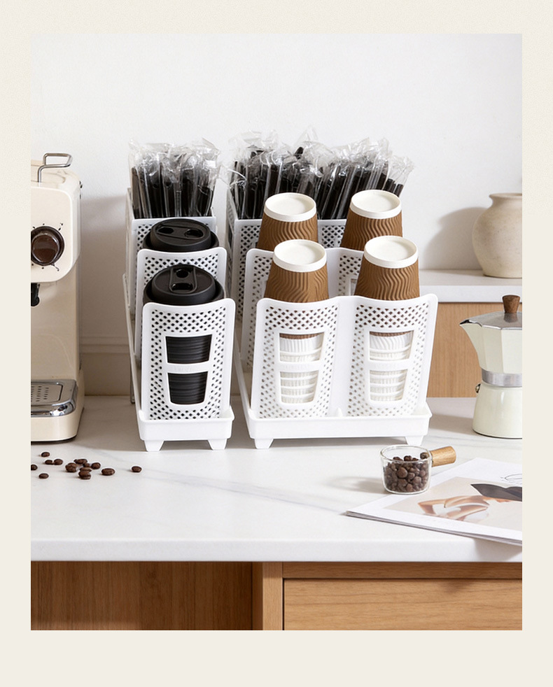 탈착식 종이컵 보관함 밀크티 음료 매장 일회용 컵 보관함 데스크탑 칸막이 경사 컵 홀더
