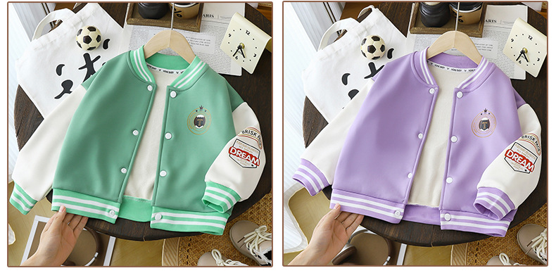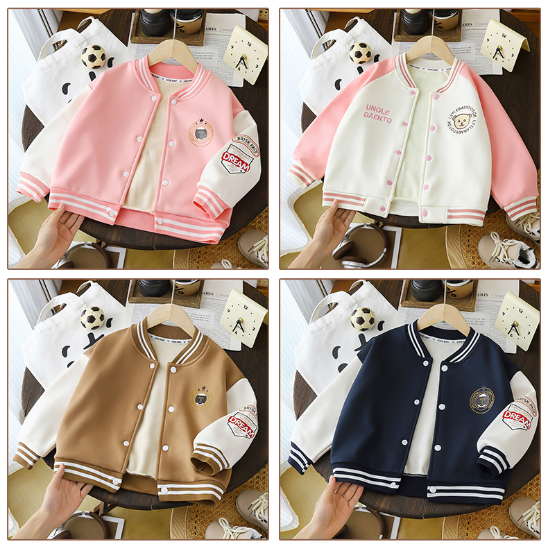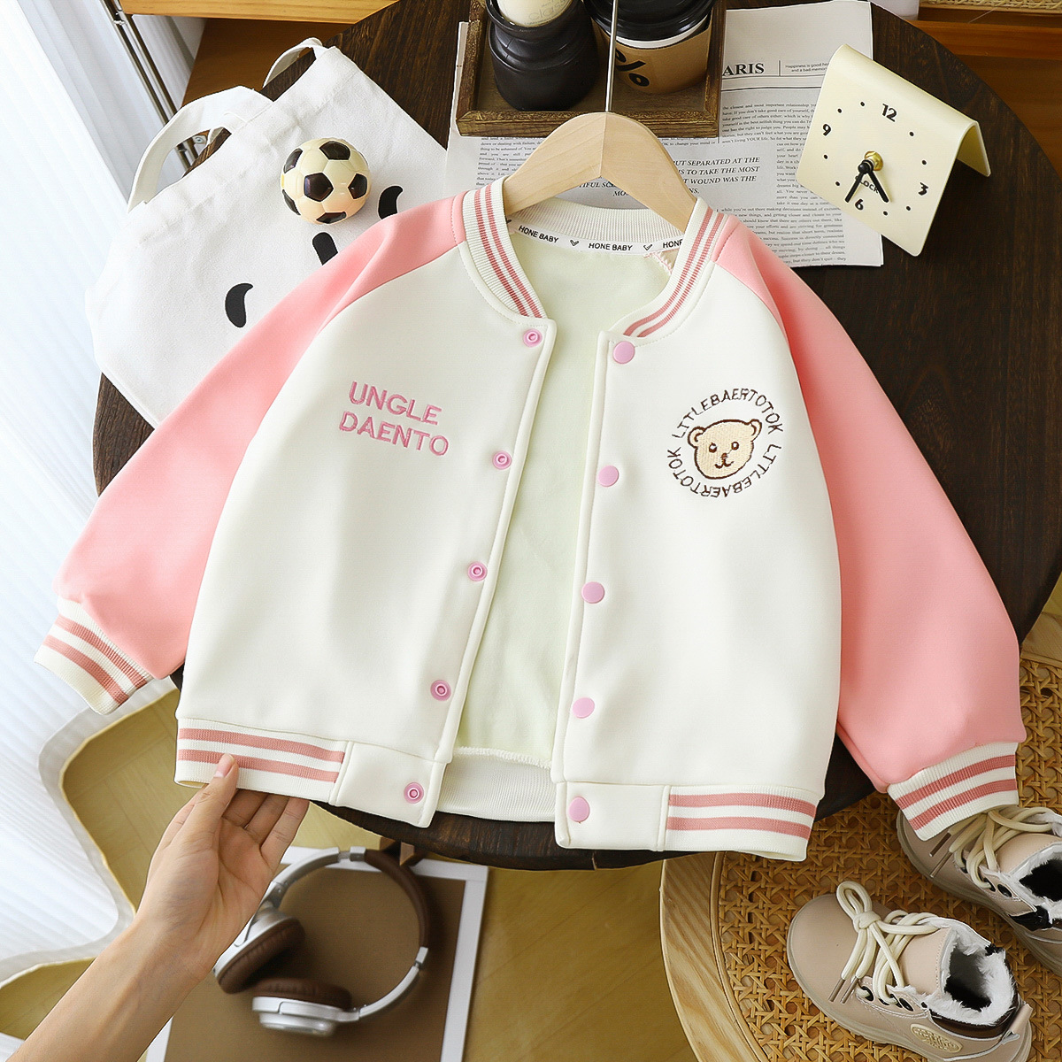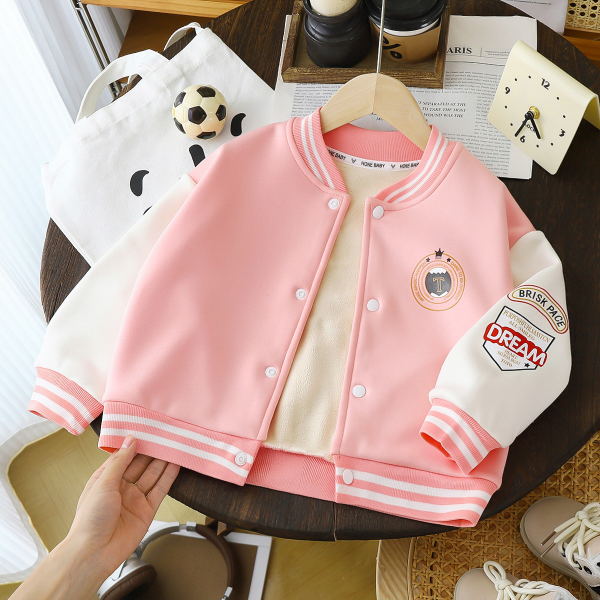 2025 새로운 가을 벨벳 야구 유니폼 가을 야외 소년 재킷 가을 소녀상의 의류 어린이스토어 가기