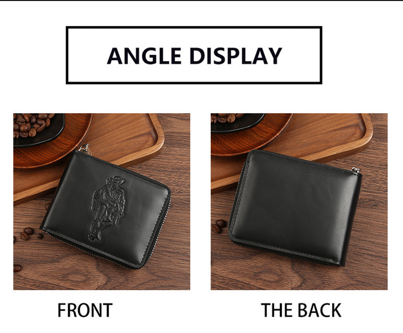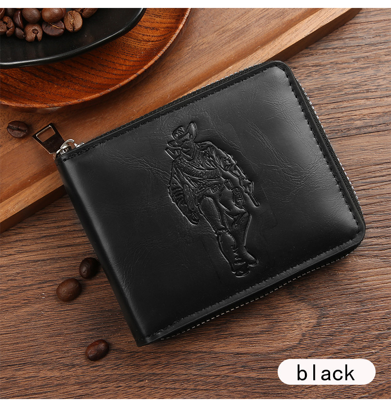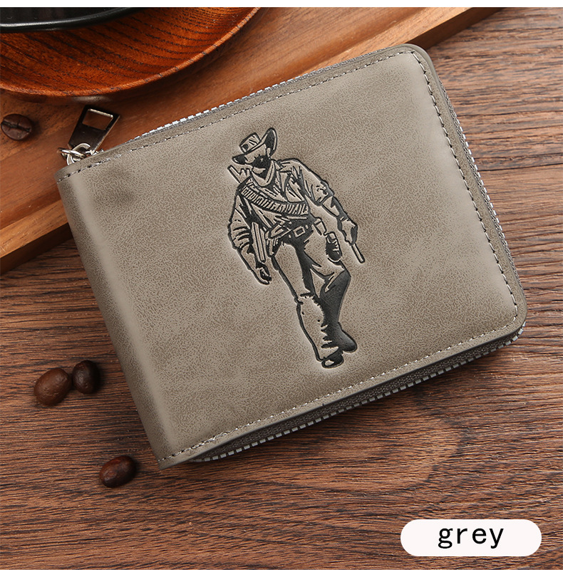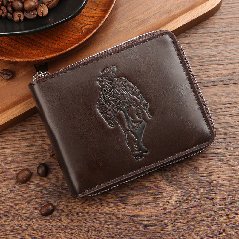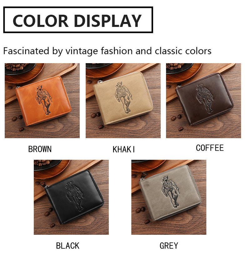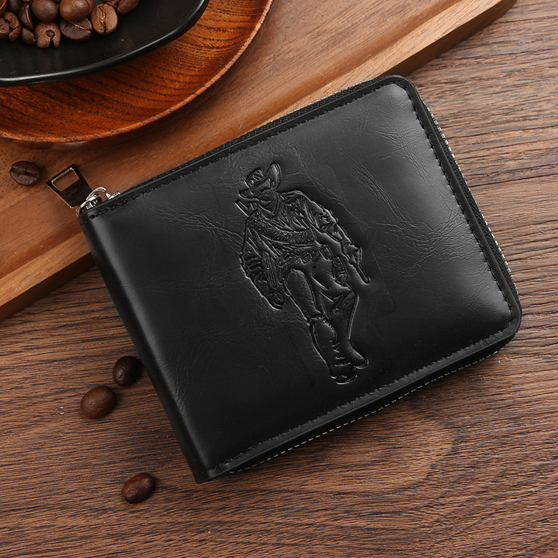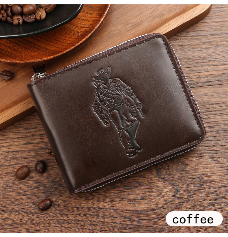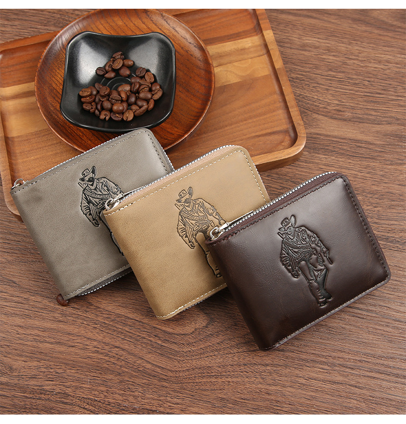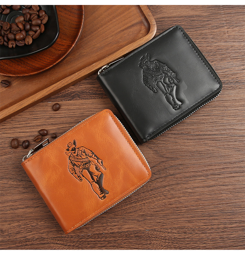 새로운 맞춤형 복고풍 양각 헌터 남성용 지갑 가로 지퍼 PU 멀티 카드 지갑 공장 직접 공급스토어 가기