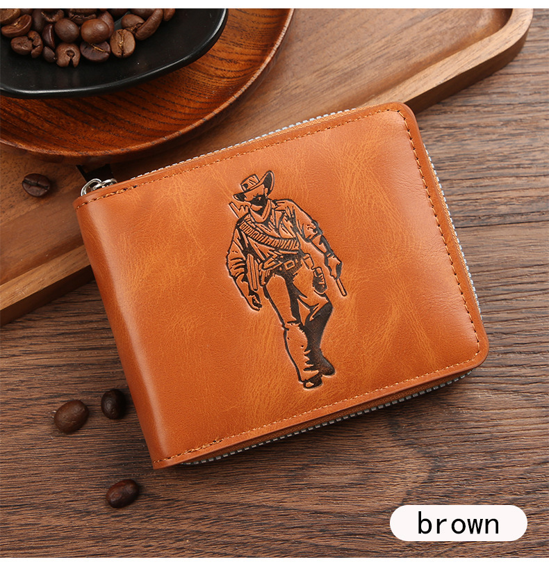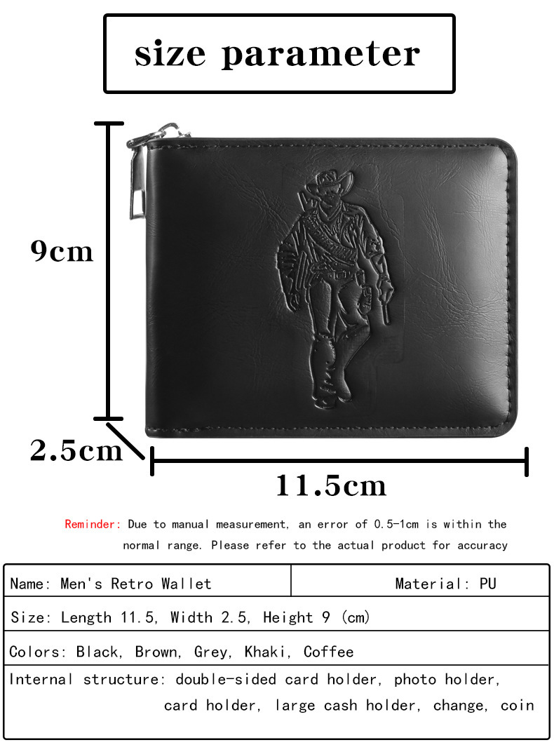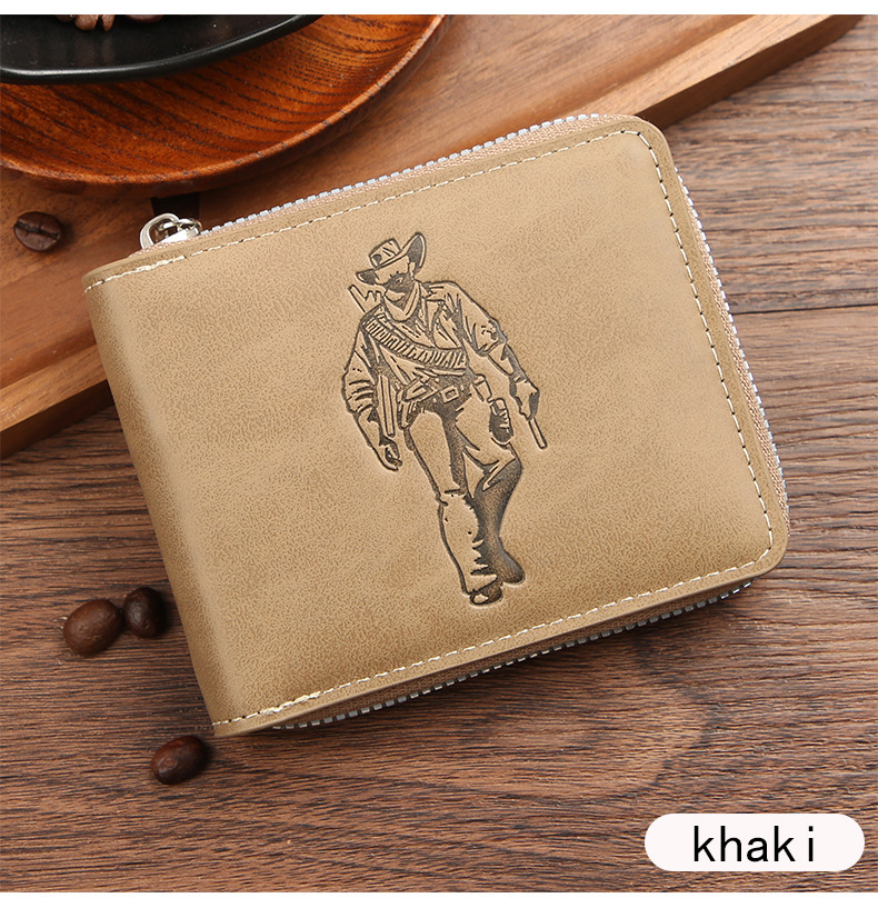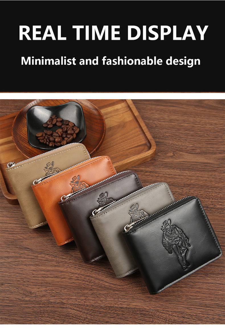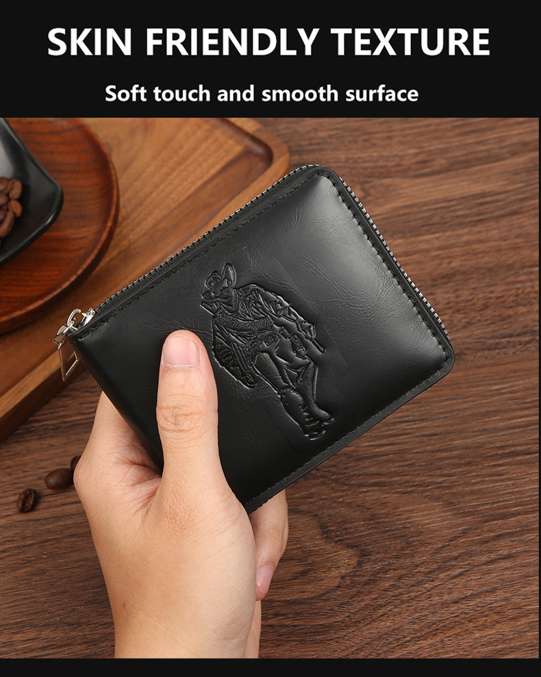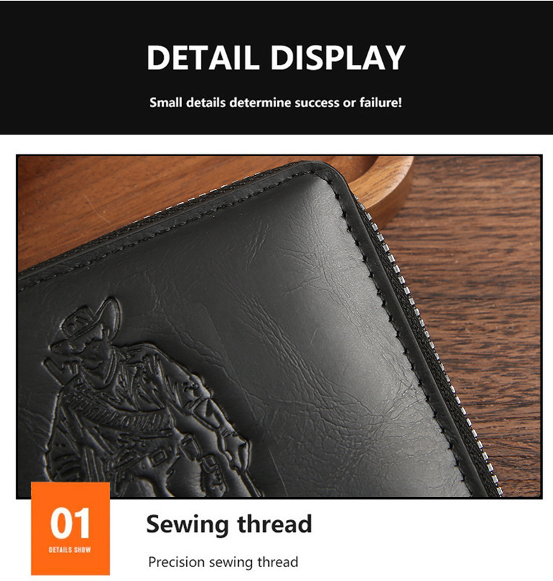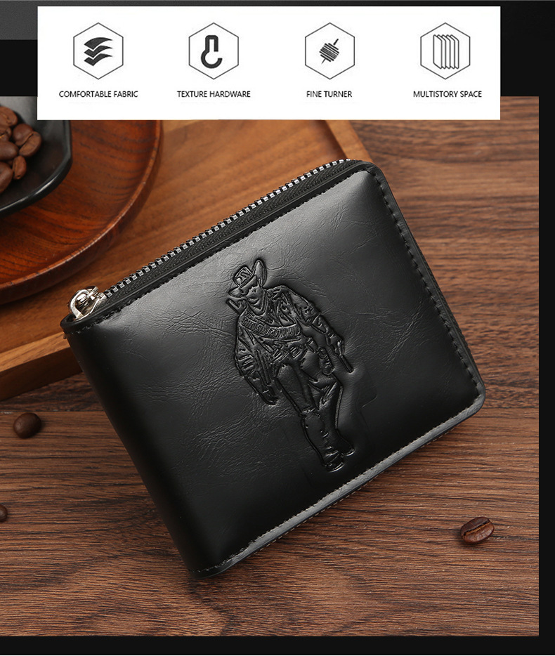 새로운 맞춤형 복고풍 양각 헌터 남성용 지갑 가로 지퍼 PU 멀티 카드 지갑 공장 직접 공급스토어 가기