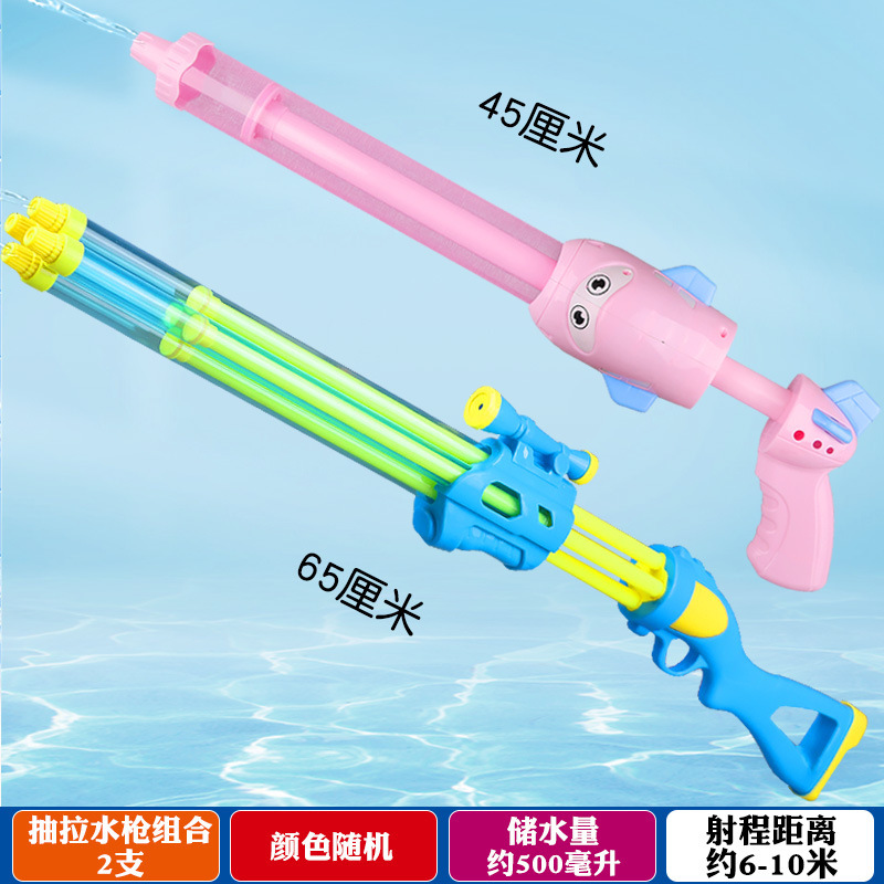 어린이 물총 장난감 주사기 풀아웃 물총 물싸움을 하는 어른과 어린 소년 소녀스토어 가기
