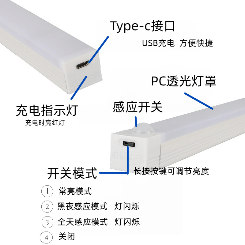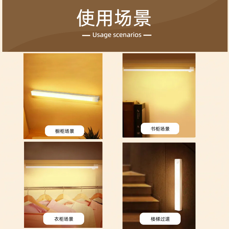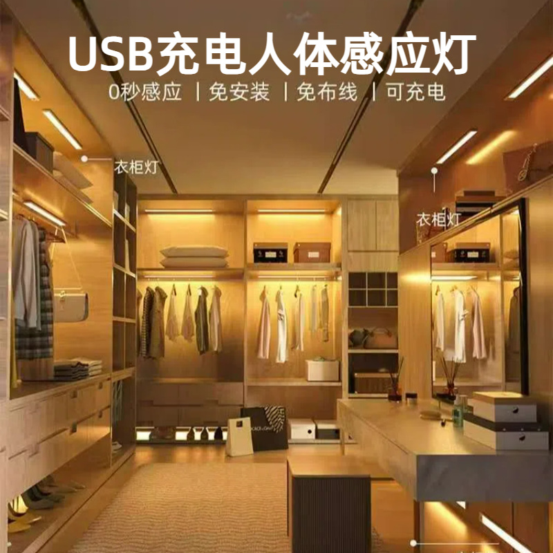 Led 인체 센서 빛 USB 충전식 침대 옆 테이블 옷장 캐비닛 신발 캐비닛 야간 조명 밝기 조절 가능한 스트립 빛