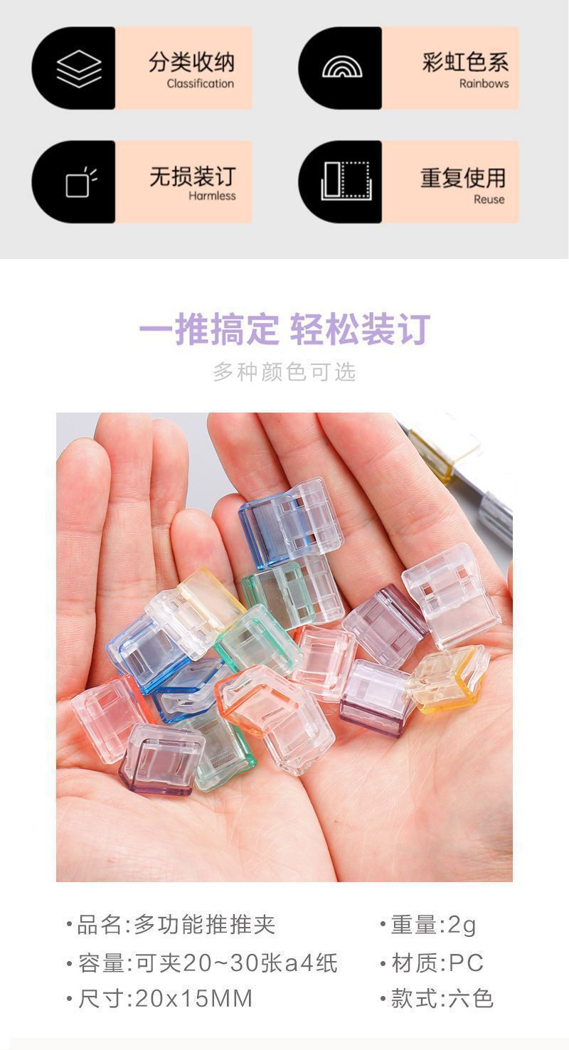 캔디 컬러 푸시 클립 데이터 저장 고정 클립 투명 컬러 학생 시험지 다기능 사무실 파일 클립스토어 가기