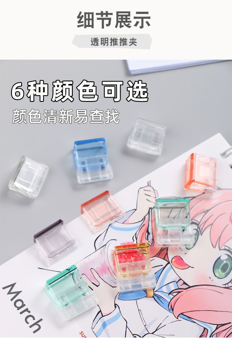 캔디 컬러 푸시 클립 데이터 저장 고정 클립 투명 컬러 학생 시험지 다기능 사무실 파일 클립