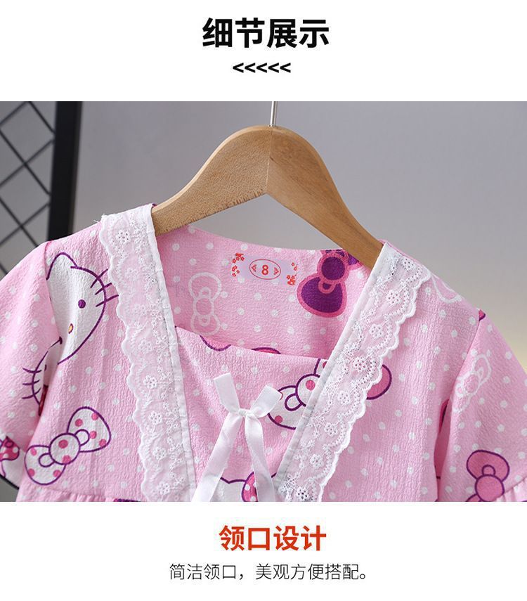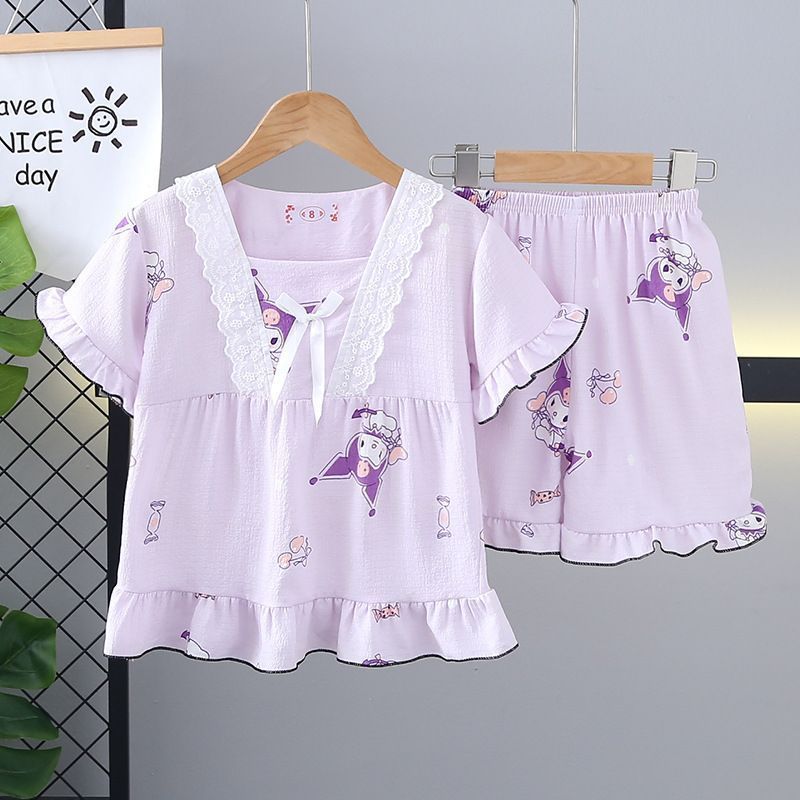 아동용 에어컨 의류 세트, 여아용 잠옷, 베이비 버블 코튼 반팔 반바지 투피스 세트, 어린 소녀 가정복 여름스토어 가기