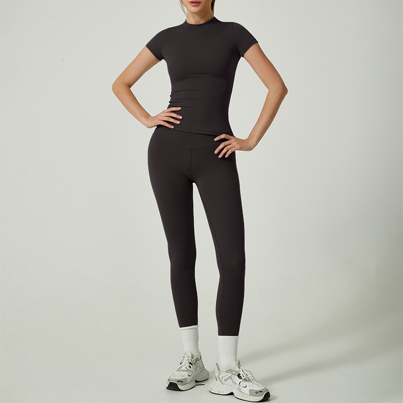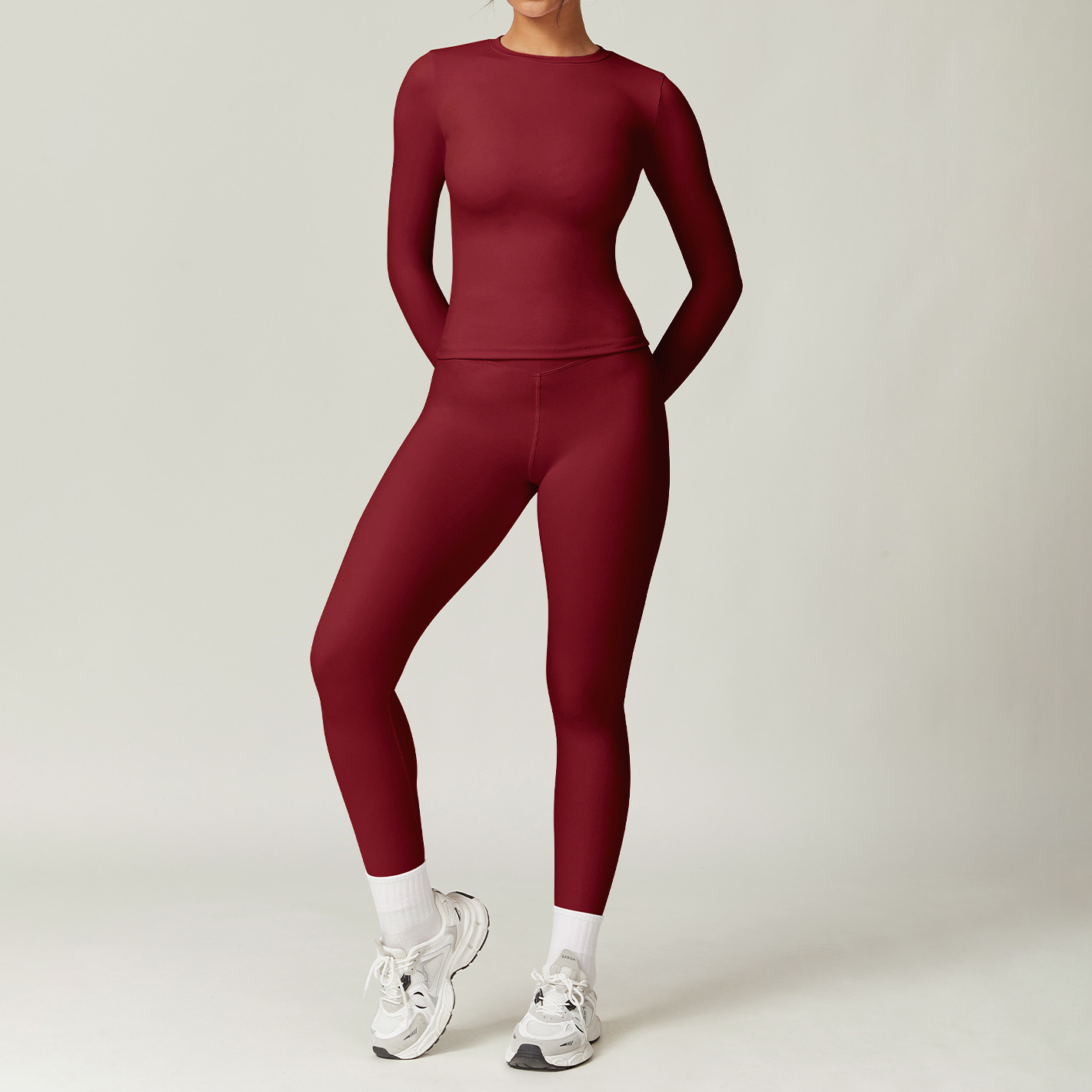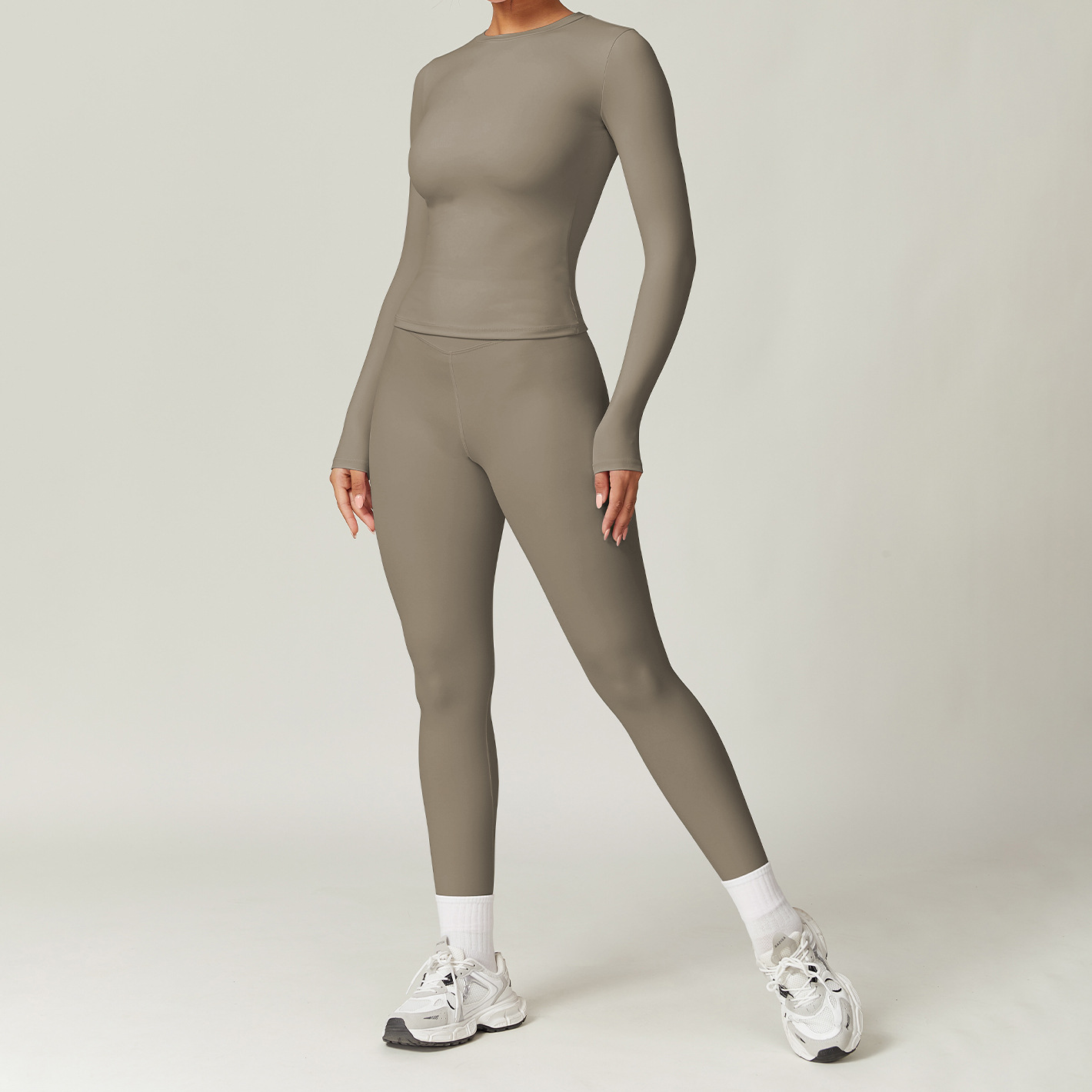 크로스보더 전용 기모 요가복 세트, 2피스, 신축성 있는 허리 조절 요가 팬츠, 스포츠 타이트, 속건성, 여성용 세트