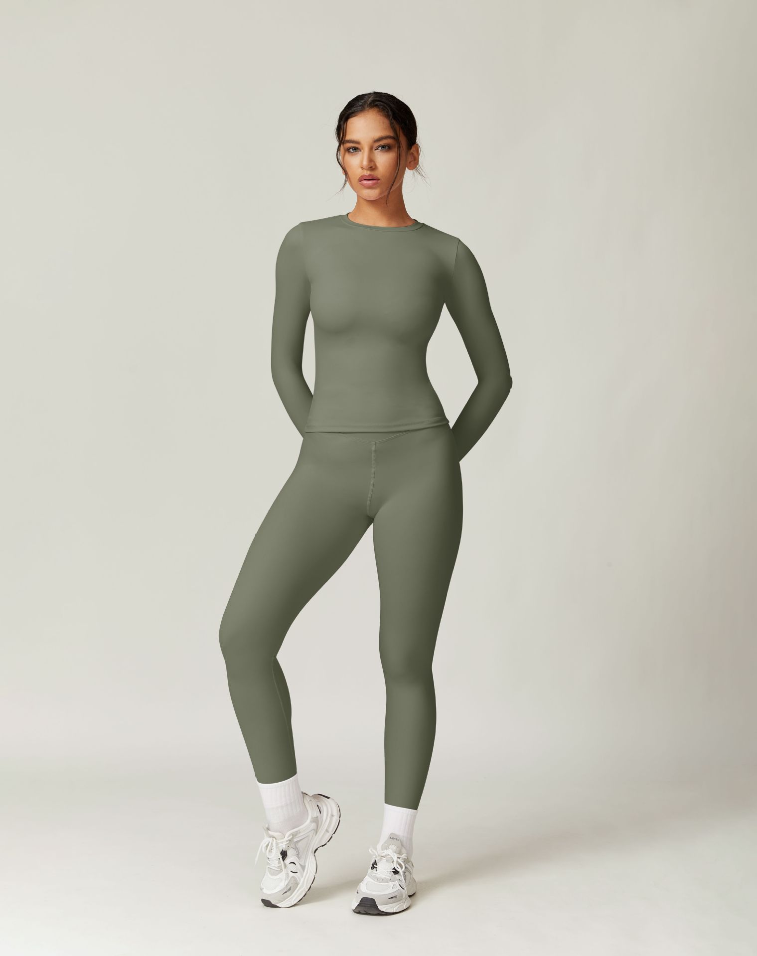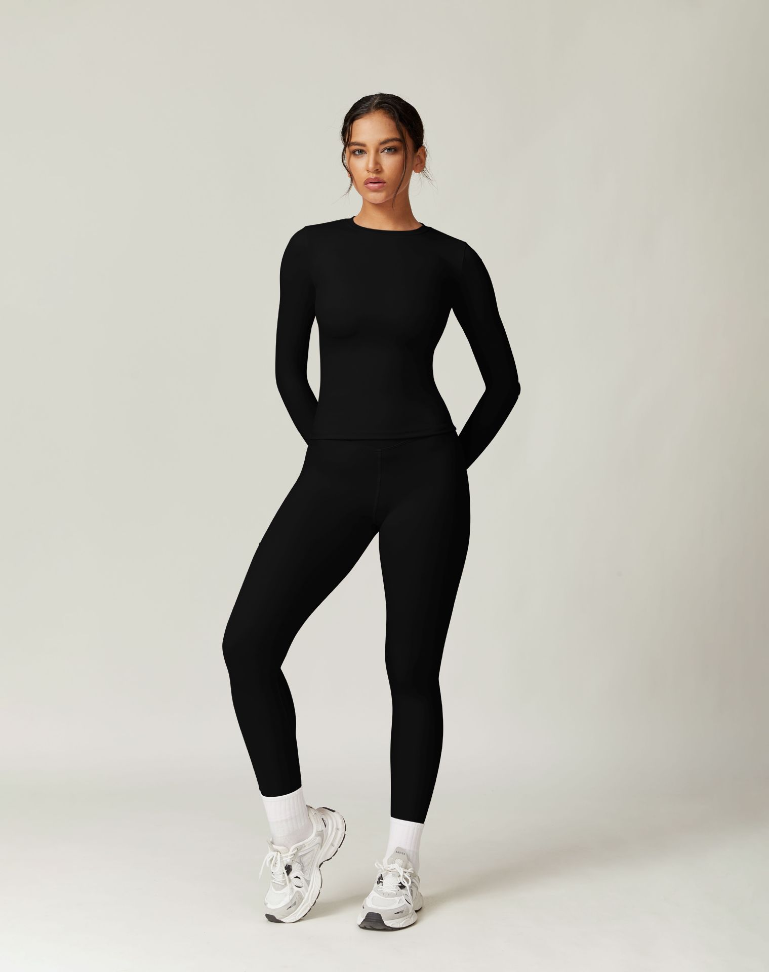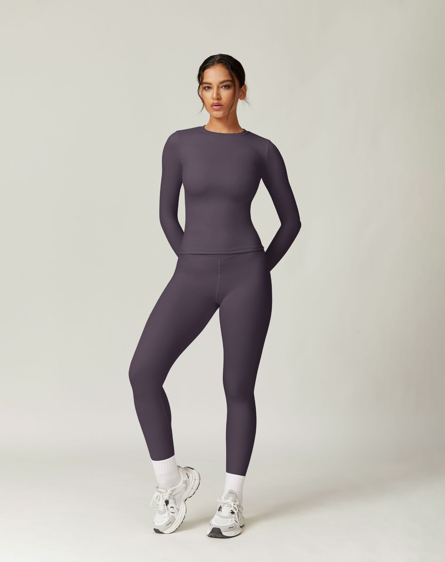 크로스보더 전용 기모 요가복 세트, 2피스, 신축성 있는 허리 조절 요가 팬츠, 스포츠 타이트, 속건성, 여성용 세트