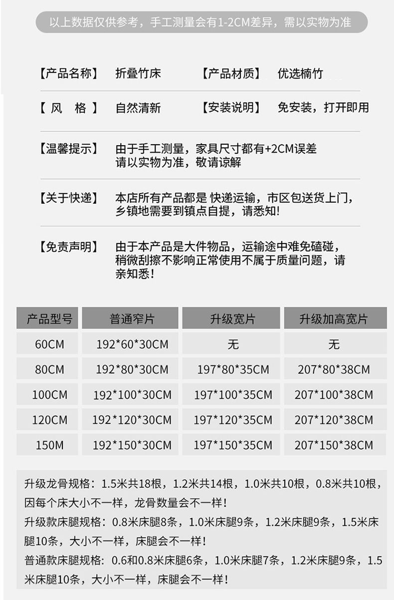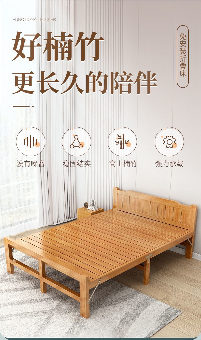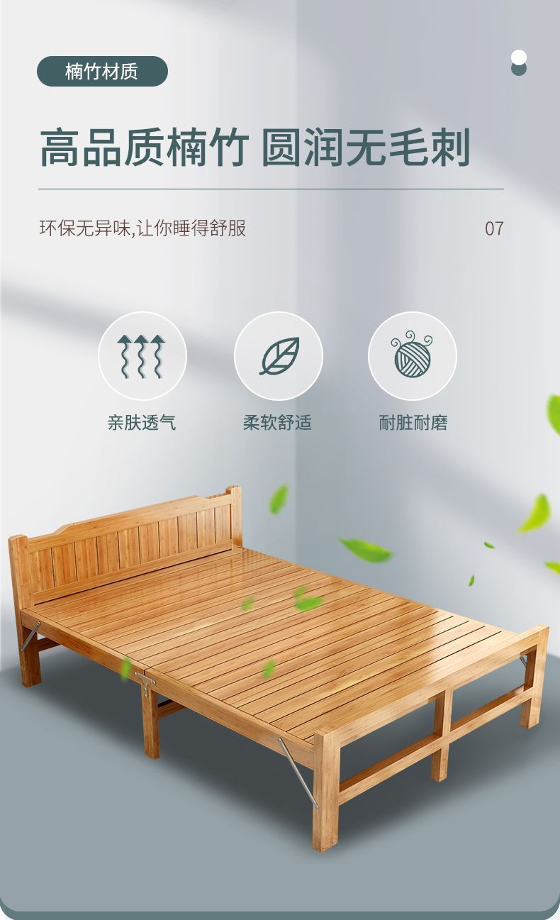 대나무 침대 접이식 침대 두꺼운 접이식 성인 싱글 더블 침대 임대실 접이식 소파 쿨 침대 이중 목적스토어 가기
