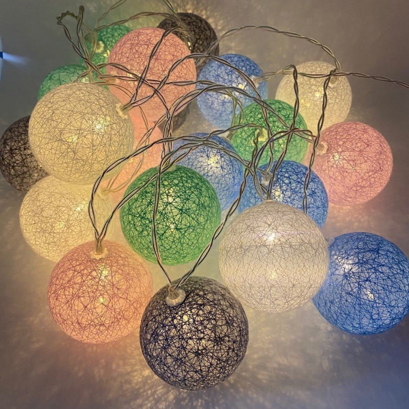 • LED 마카롱 컬러 면사 볼 램프 3.2m 깜박이는 빛