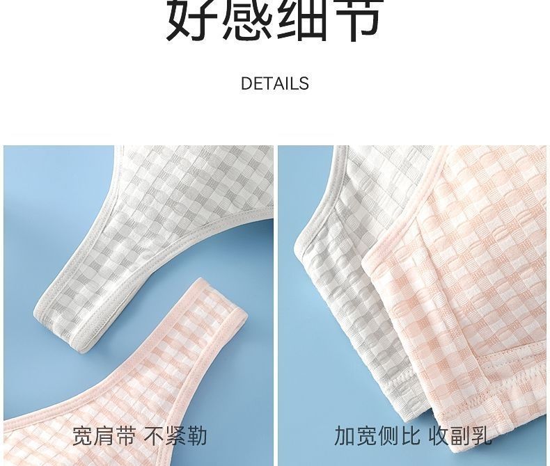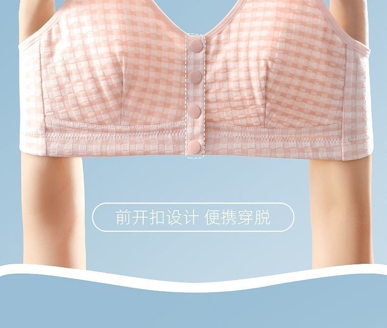 격자무늬 앞버튼 엄마 속옷, 와이어 프리 조끼 스타일 중노년용 브라, 여름용 얇고 통기성이 좋은 대형 브라스토어 가기
