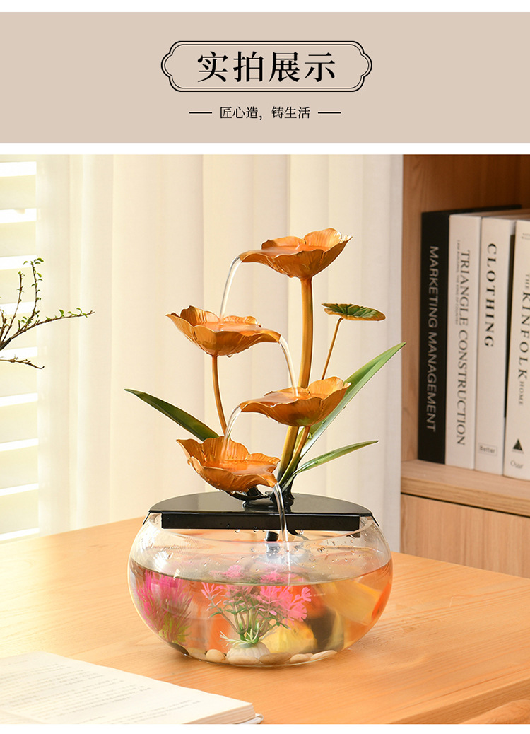 Xintianquan 인터넷 연예인 인기 유리 물고기 탱크 순수 장식품 순환 물 사무실 집들이 선물 물고기 탱크