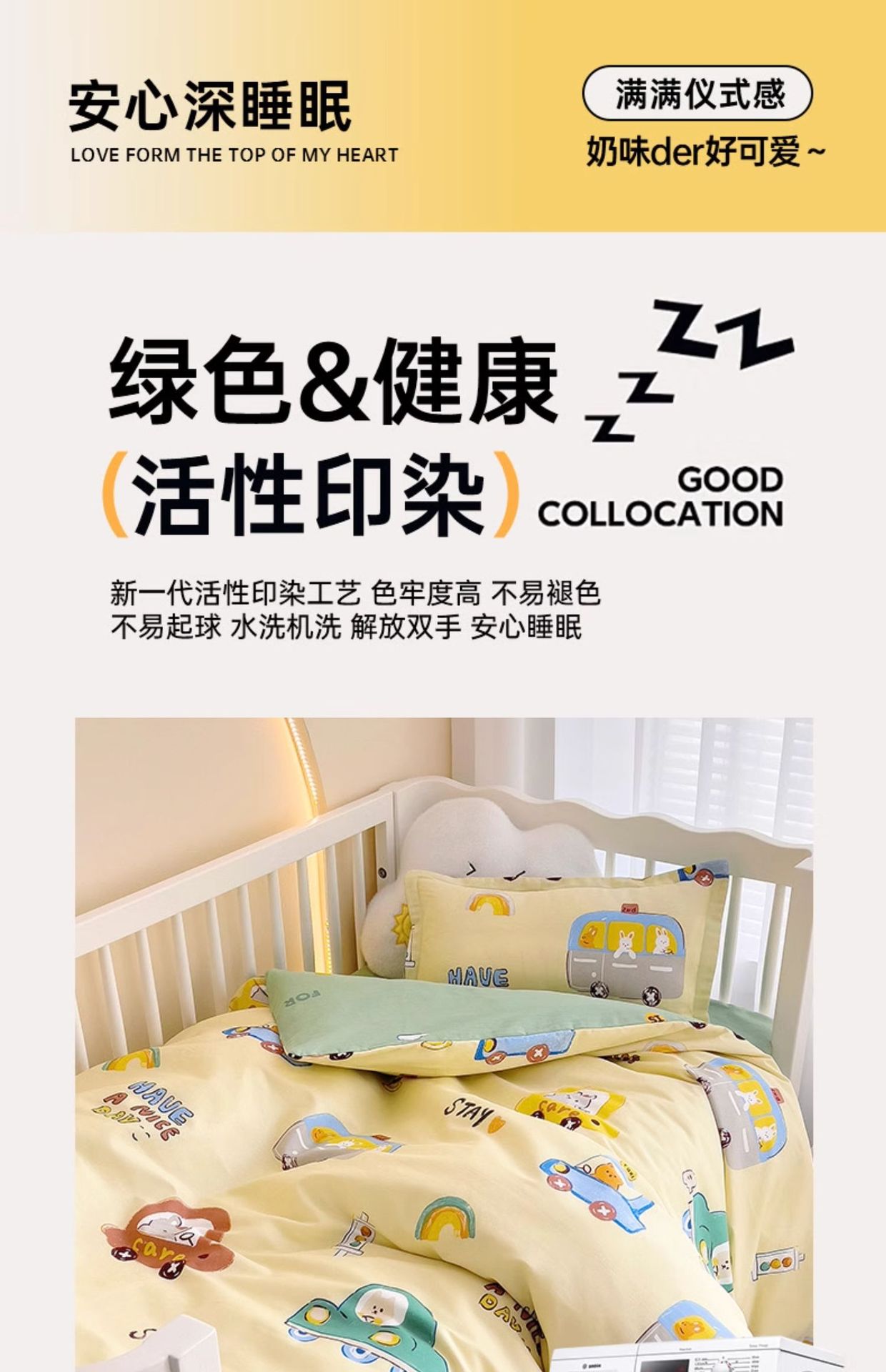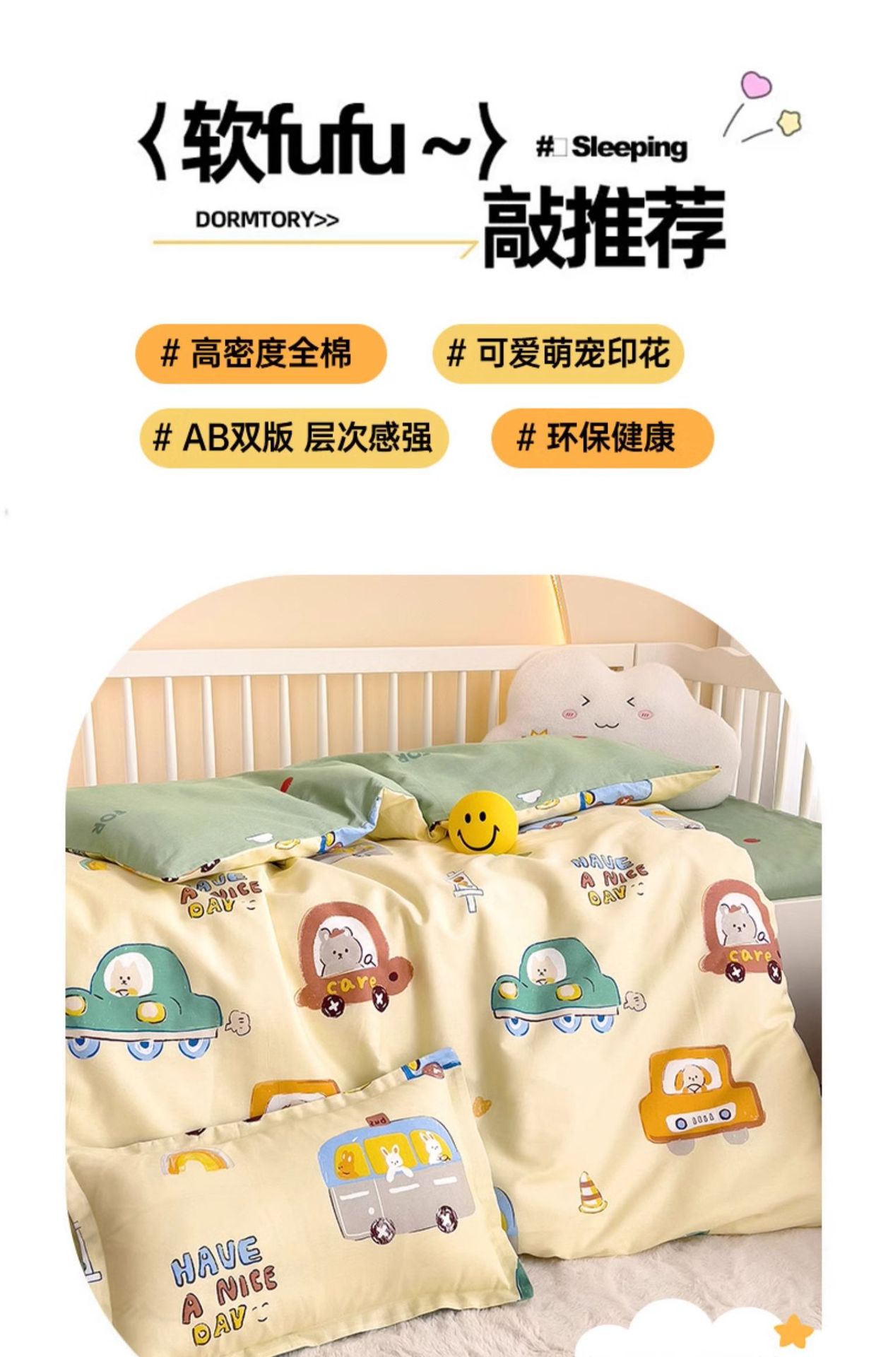 • 면 어린이 3종세트 [이불커버 120x150+쿠션커버 60x135+베개커버 30x50]