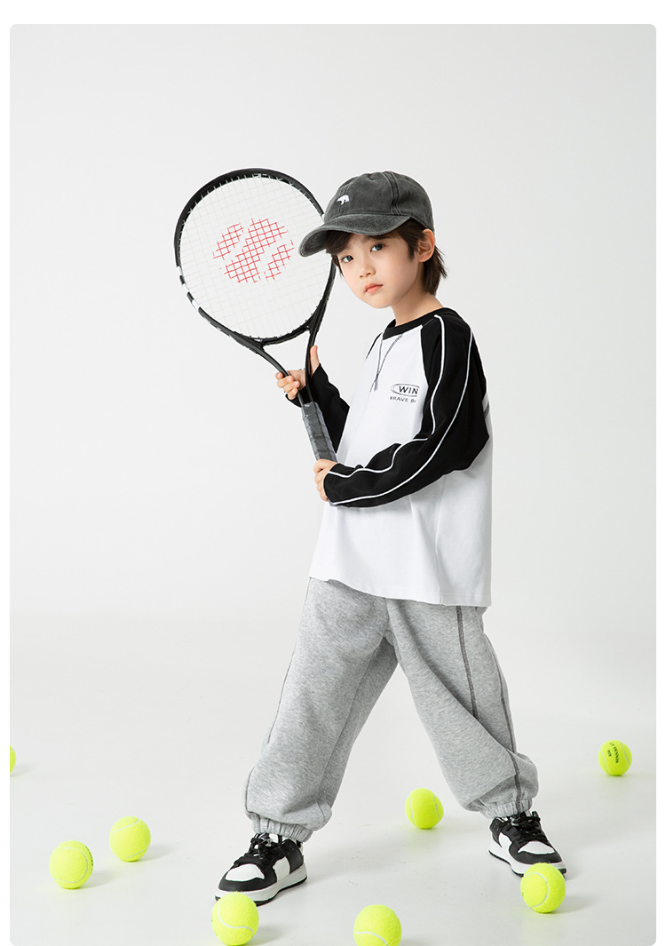 Haima 아동복 2025 봄, 가을 새 소년 항균 면화 긴팔 티셔츠 중년 및 노년층 어린이를위한 한국 스타일 가을 옷스토어 가기