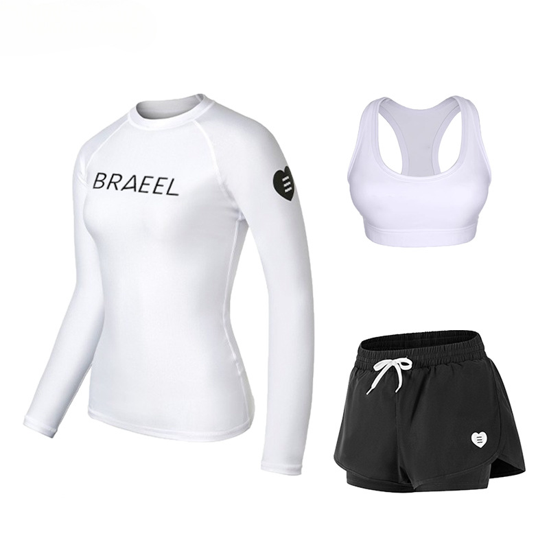 • 여성용 흰색과 검정색 지퍼 탑 + 문자가 있는 흰색 조끼 + 검정색 반바지 3종 세트