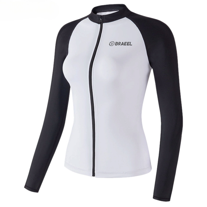 • 여성용 흰색 및 검정색 지퍼 긴팔 탑