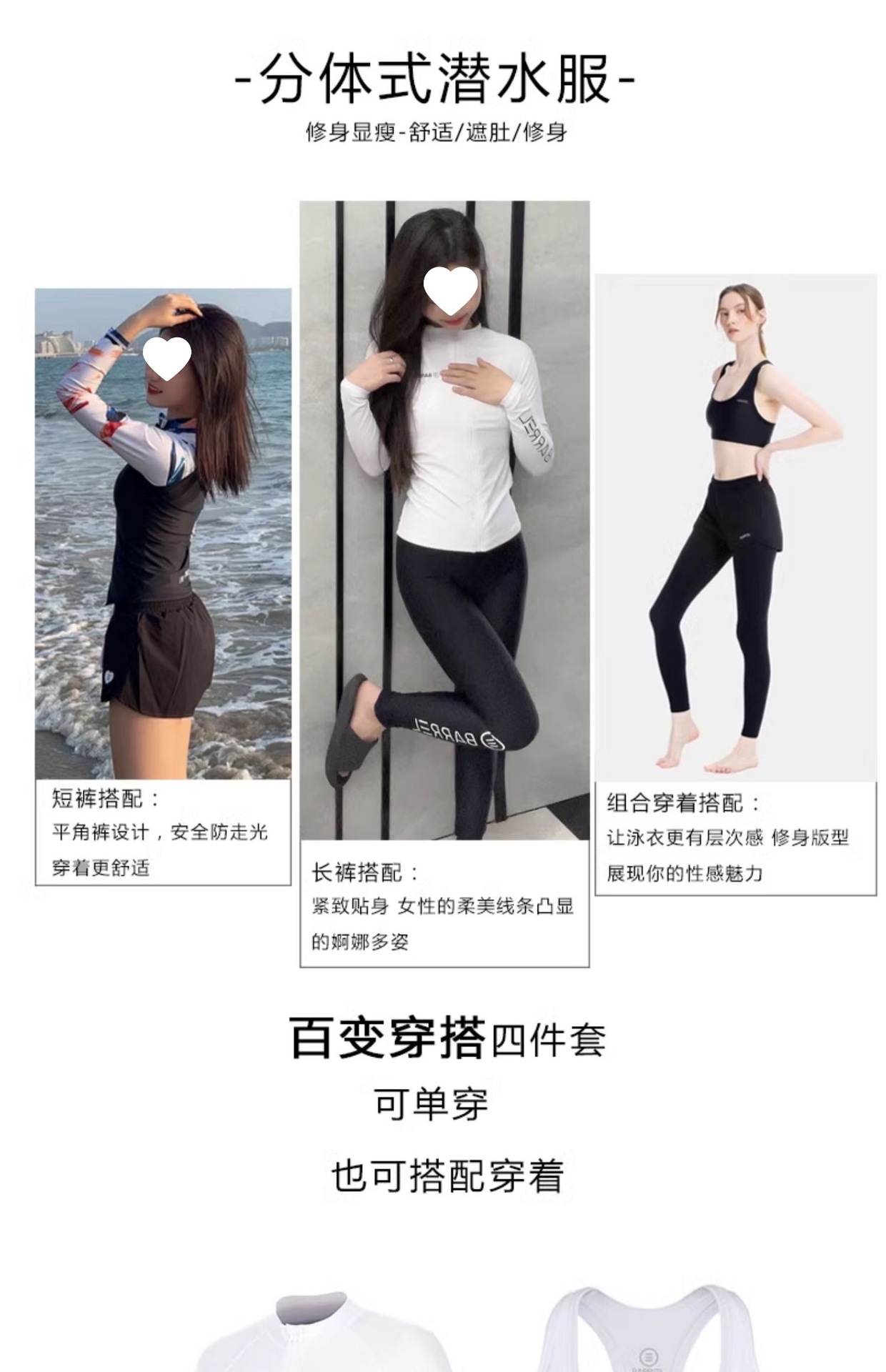 여성용 스노클링 슈트, 페이크 투피스 스플릿 속건 수영복, 자외선 차단 슈트, 다이빙 슈트, 서핑 슈트, 보수적인 수영복, 해파리 슈트