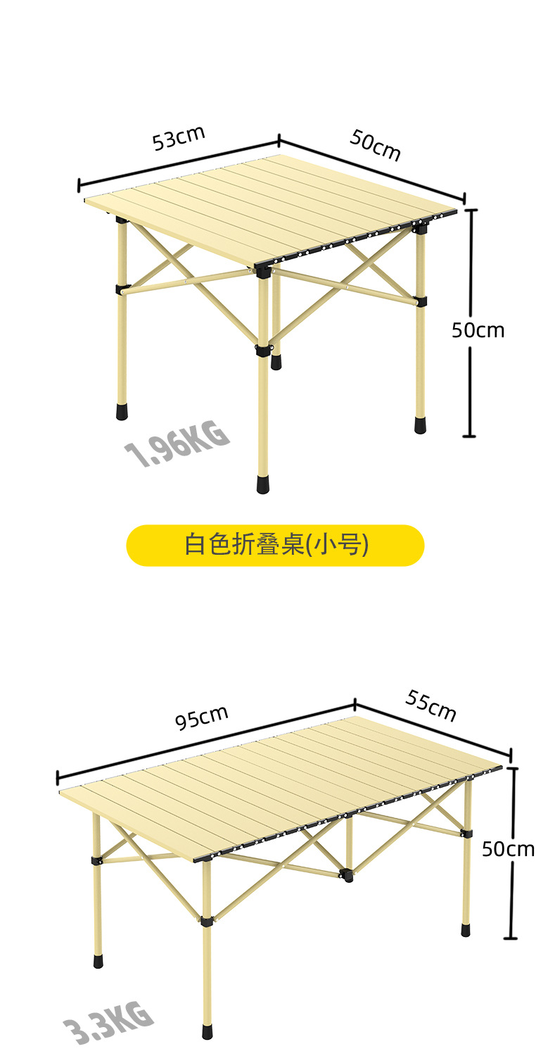 • 황백색 50cm 정사각형 테이블 + 대형 흰색 접이식 의자*2