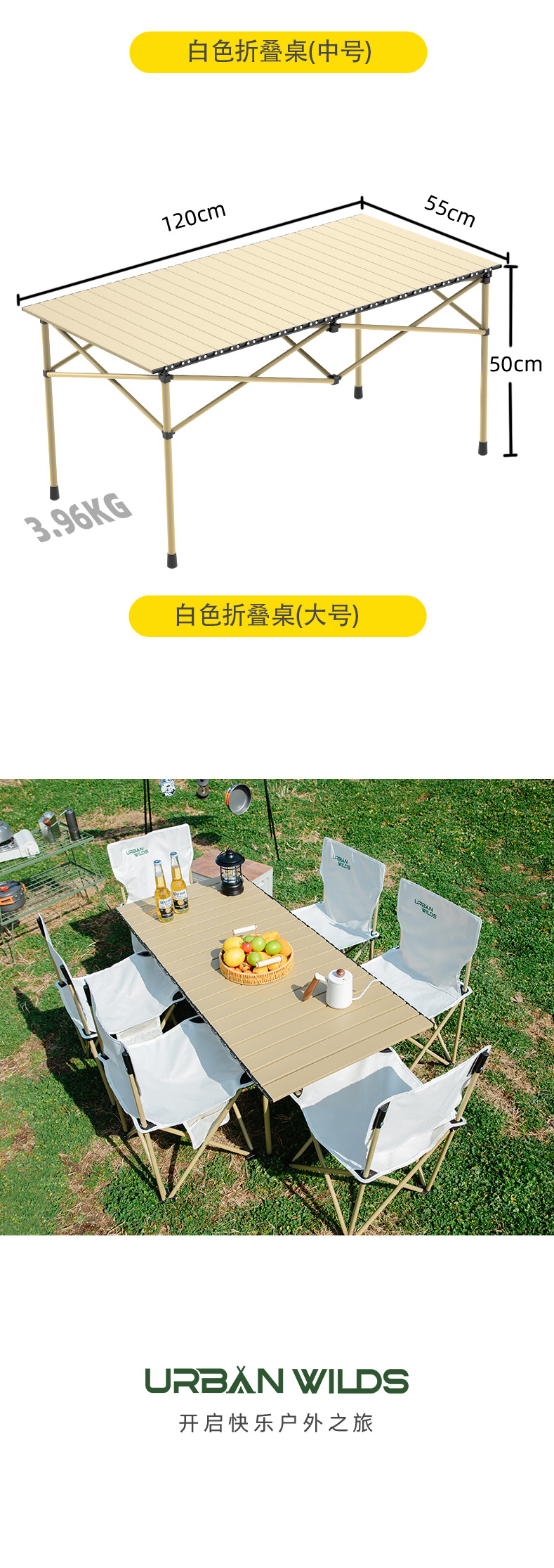 • 황백색 120cm 길이의 테이블 + 흰색 접이식 의자 특대형*4