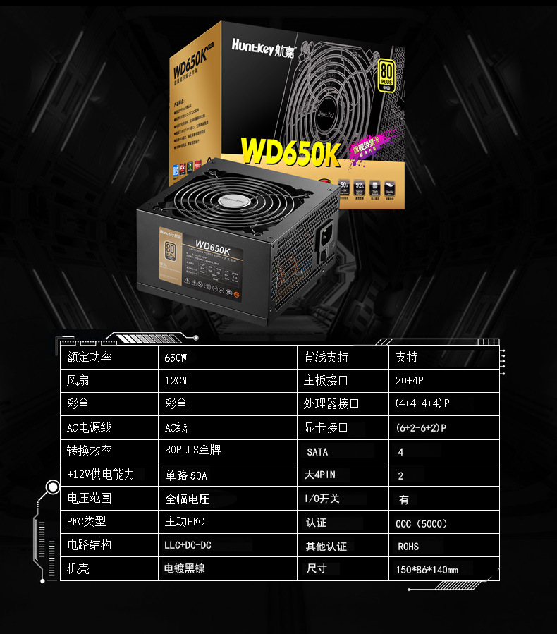 Huntkey WD650K 전원 공급 장치 정격 650W 데스크탑 컴퓨터 전원 공급 장치 전체 전압 게임 호스트 전원 공급 장치 음소거스토어 가기