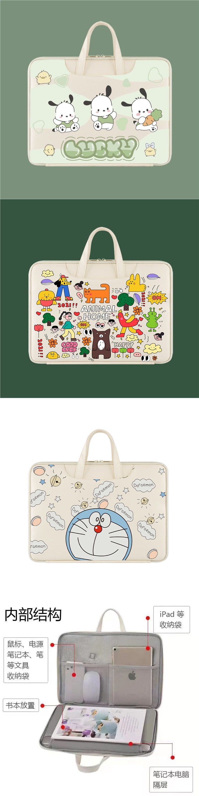 노트북 가방 휴대용 만화 남성과 여성 14inch Apple Xiaoxin Pro13 도라에몽 보호 커버 Huawei스토어 가기