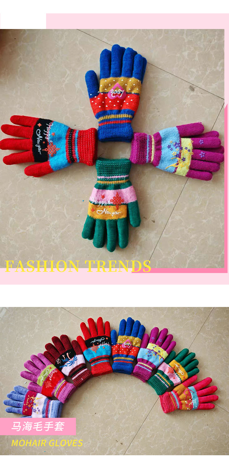 겨울 새로운 야외 따뜻한 모헤어 전체 손가락 장갑 두꺼운 여성 인쇄 양모 장갑 제조 업체 도매스토어 가기