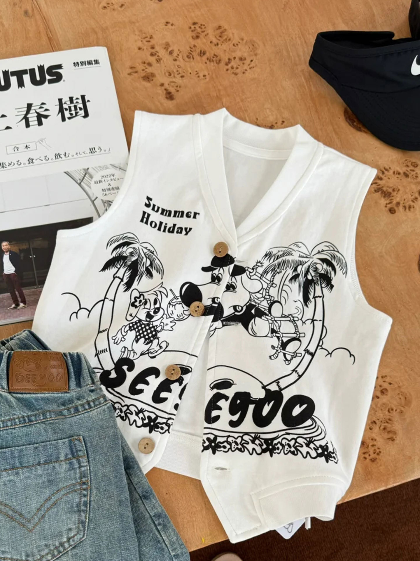 소년 조끼 어린이 여름 옷 2025 새로운 얇은 스타일 조끼 아기 소녀 슈퍼 멋진 흰색 스트리트 탑스토어 가기