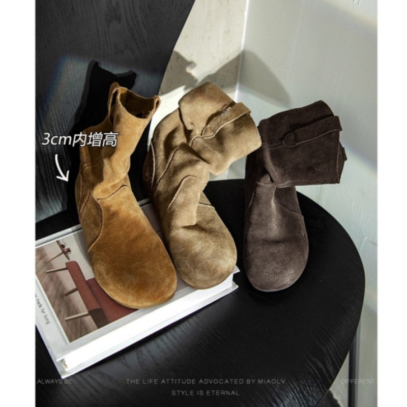 2025년 신상 가을 햇살~ 가죽 버켄스탁 부츠 여성 가을 겨울 키높이 벨벳 숏부츠 브라운 파일부츠스토어 가기
